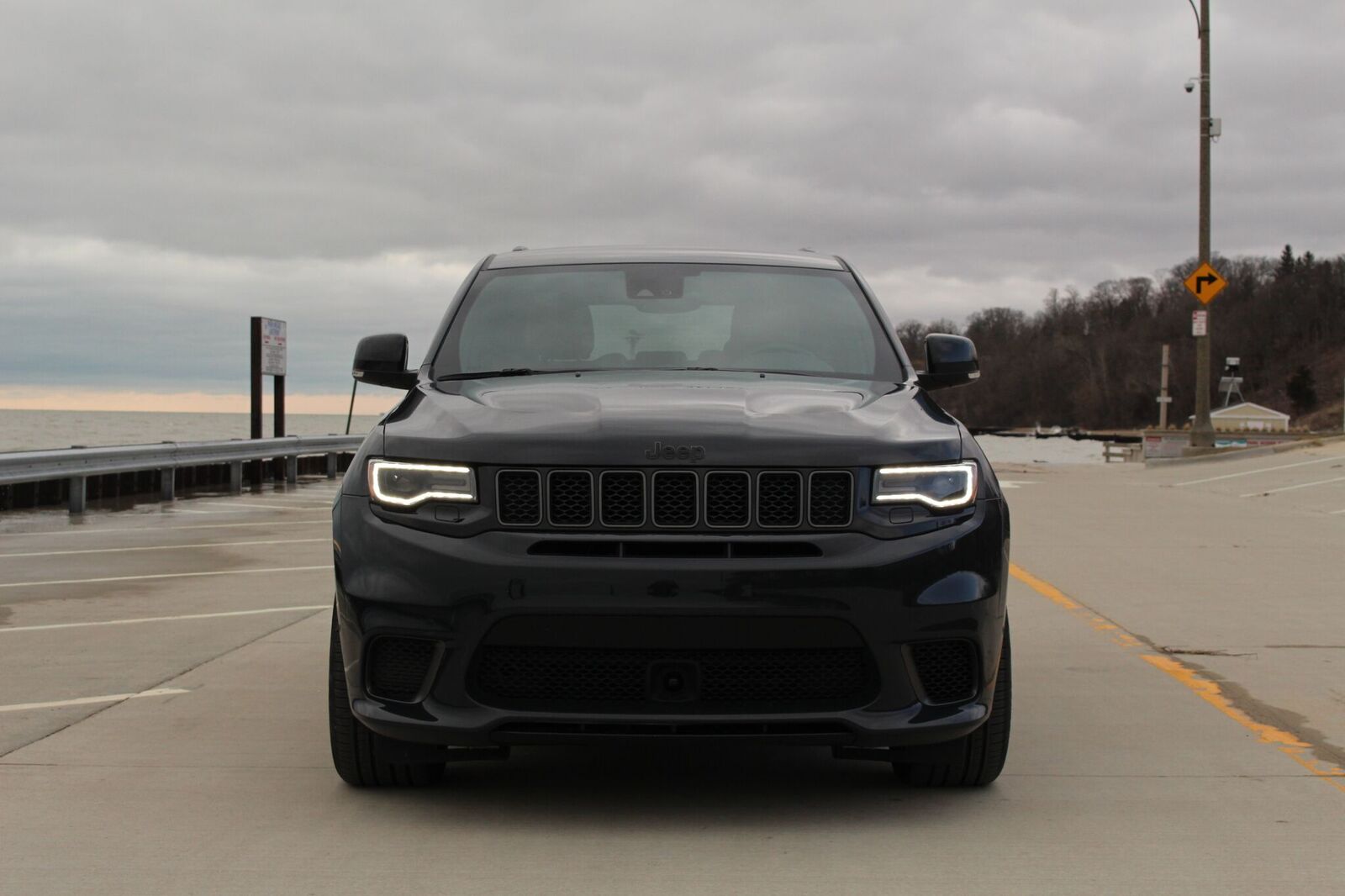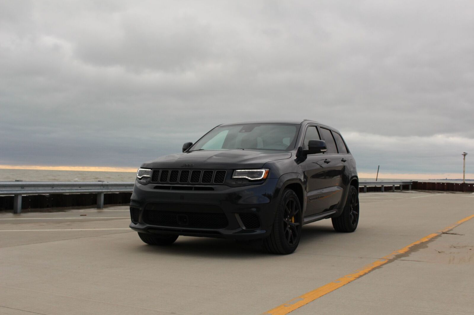Yep. This Jeep packs a 6.2-liter supercharged V8 under the hood that’s good for 707 hp and 645 lb-ft of torque. The supercharger adds 11.6 psi of boost to the eight cylinders and makes a forlorn wail as it does so. Pair that with the raucous, angry exhaust note and you have the soundtrack to your own personal racetrack. Suddenly everything is exciting. All you have to do is put your foot down.