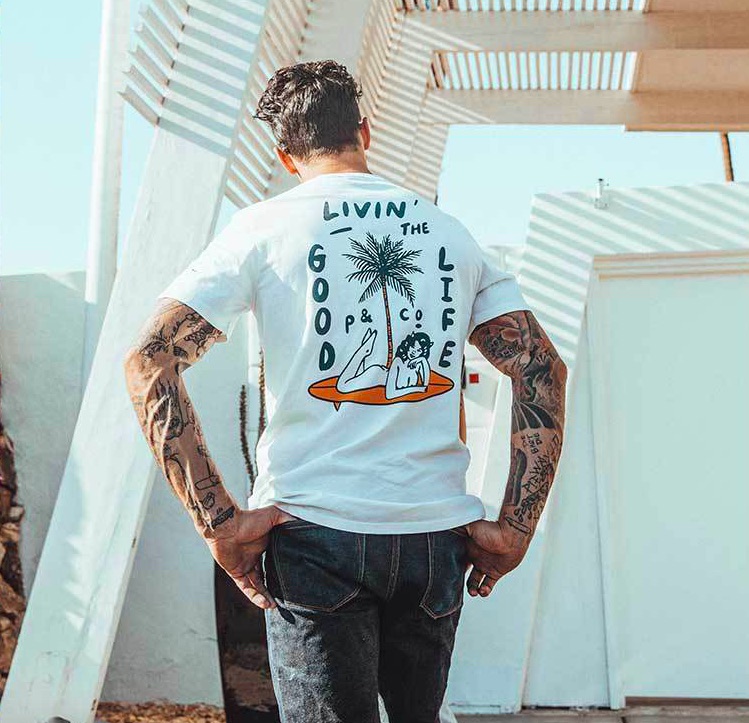 The Dark Daze Collection from P & Co is once again inspired by the spirit for adventure which has typified the brand since their inception. The endless roads, palm trees and hazy sunsets that serve as a catalyst for unforgettable adventures and trips into the unknown make for the perfect muse for this eye-catching new collection from P & Co and they typography and illustration inspired apparel is on point once again.