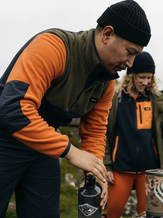 This is a new take on classic outdoor fleeces. The Ursus features a classic crew neck style with ribbed neck and cuffs, in-seam front pockets, tonal embroidered branding on the chest and a hang loop. Crafted from 100% recycled polyester pile fleece, it’s thick but lightweight – keeping you comfortable while you explore and warming you up quickly when emerging from a cold sea.