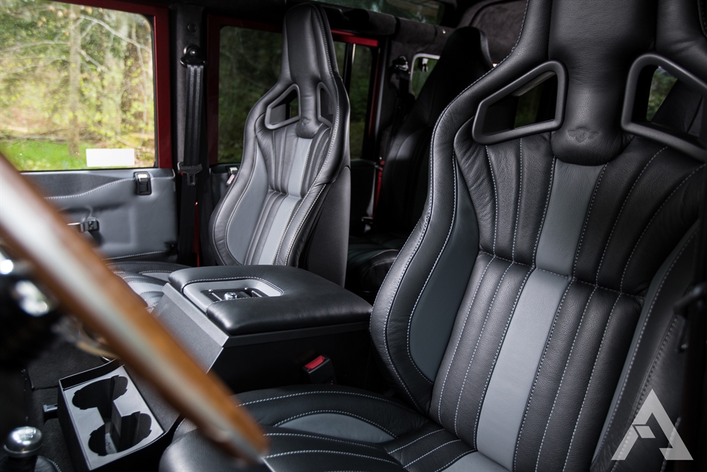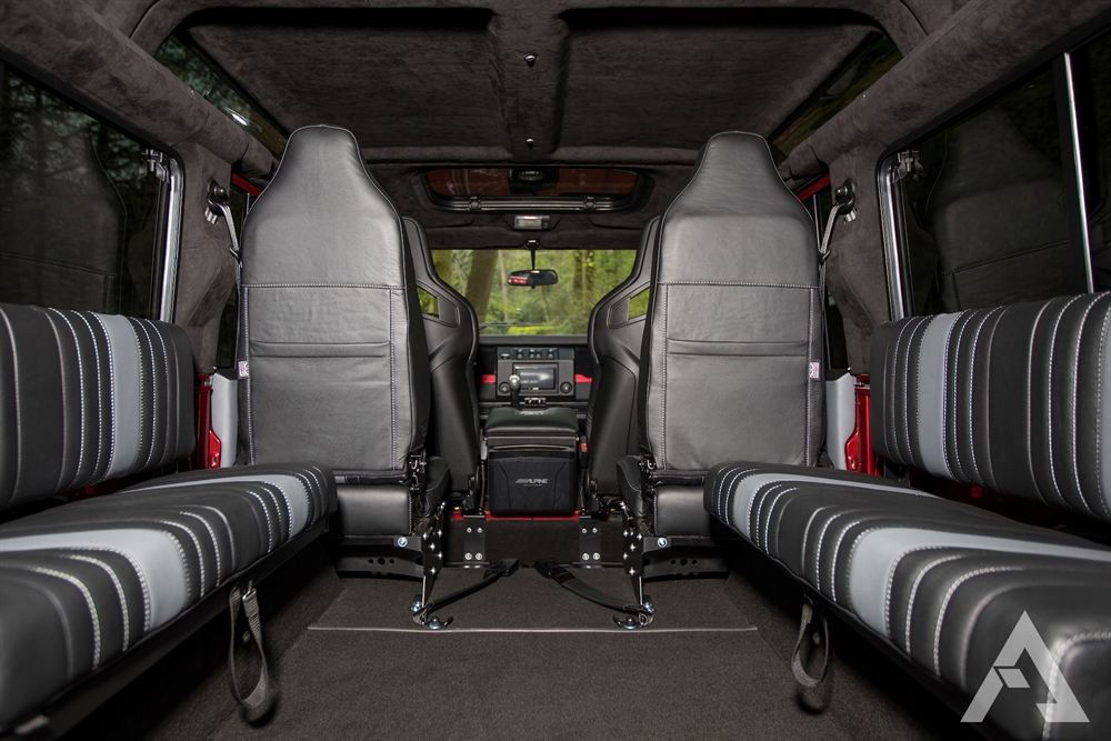 As if that wasn’t enough, the good news keeps on coming when you head inside the Arkonik Artemis Land Rover because the interiors are a luxurious haven from which to enjoy all your off-roading adventures. Within this beast of a Land Rover you’ll find Ruskin Bespoke Black and Grey leather seating trim, eye-catching Recaro Cross Sportster CS front heated seats, two premium high back seats, bench seats in the load area, black suede headlining and side panels. This is complimented by an Evander 15″ wooden rim steering wheel, leather door cards with brushed aluminium alloy door furniture, a top of the range leather stitched gear gaiter and a first class Alpine sound system which boasts Apple CarPlay for the tech enthusiasts out there.