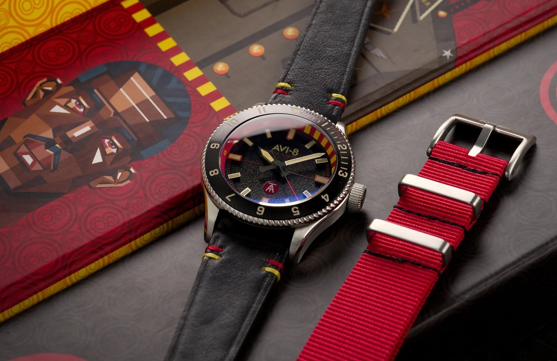 Acting as the beating heart to these watches from AVI-8 is the precise hybrid meca-quartz Japanese Seiko TMI movement, meaning that this watch commands functionality and utility without any sort of compromise. And the fact it can be on your wrist for under £300 is the real icing on the cake in our opinion. Each one comes packaged in a striking gift box with unique and eye-catching artwork of iconic Tuskegee Airmen from the various squadrons, specially created by designer Derrick Whitfield.