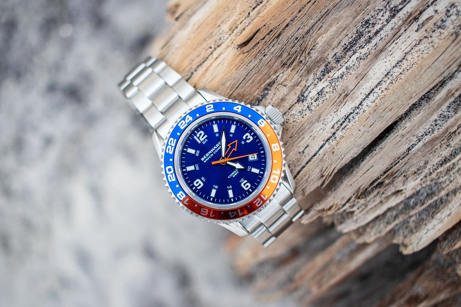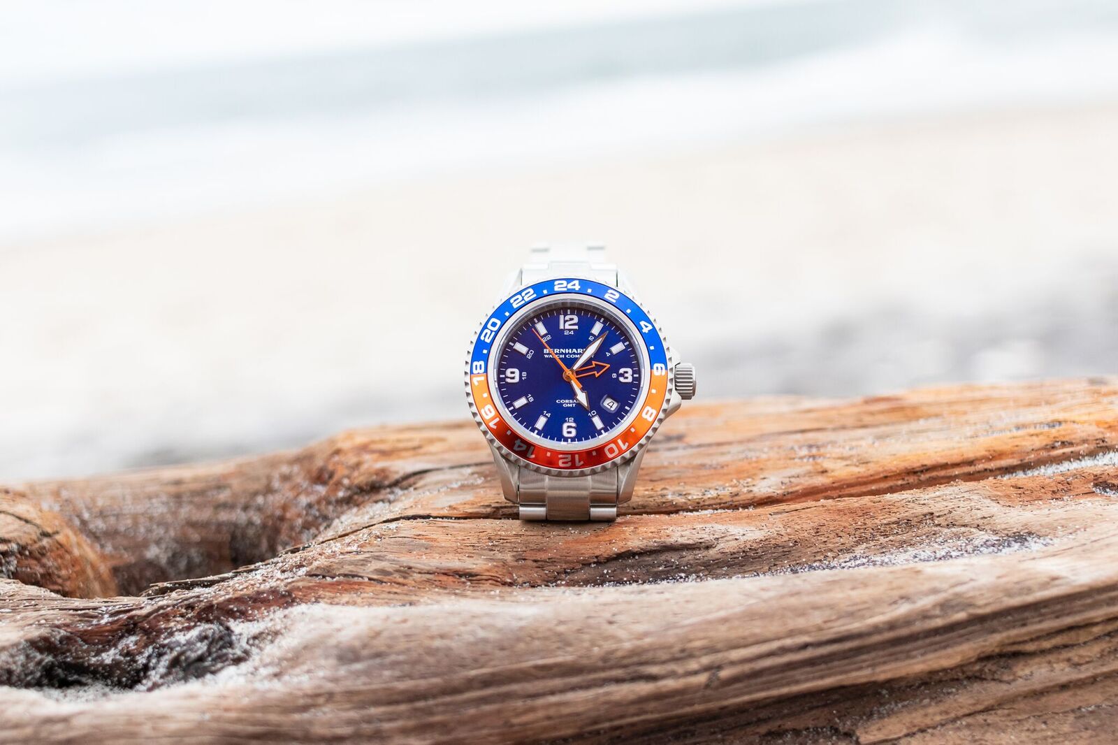 Visually vibrant, the Bernhardt Corsair GMT Watch ($679) is going to make a real style statement on the wrist and turn heads aplenty. Again boasting a striking nautical feel, this majestic looking timepiece from Bernhardt is a newly updated version of the watchmaker’s flagship timepiece. Tested by time and proven again and again, it will keep you on schedule no matter where you land. Named in honor of the F4U Corsair fighter plane, and featuring its likeness within the clear display case back, the Corsair GMT is a formidable and dependable watch and a first class showcasing of what we can achieve when duty calls. It has a Swiss ETA 2836 automatic movement, a blue dial with Blue/Orange rotating 24-Hour bezel and orange second and GMT hands and it is capable of tracking three time zones simultaneously. ($679)
