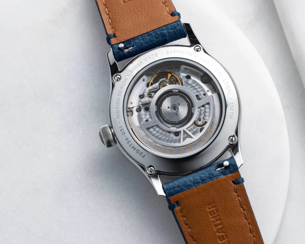 Flip the watch over, and an exhibition case back reveals the engine within. Powering the Lander Kano is the highly regarded Swiss-made Sellita SW330-2 ‘Top Grade’ automatic movement, boasting around 56 hours of power reserve and operating at a smooth 28,800 vibrations per hour. This reliable workhorse ensures accurate timekeeping and effortless GMT functionality. Even the crown gets special treatment, featuring a solid bronze cap insert embossed with the Farer ‘A’. Water resistance is a capable 100 metres, making it ready for everyday adventures and unexpected splashes.