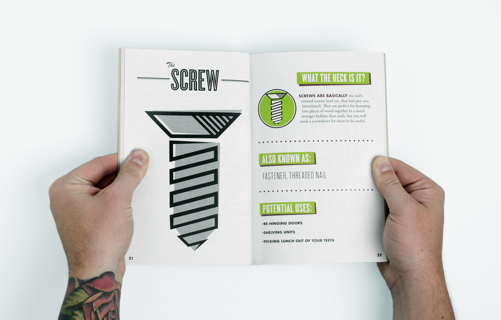 We like to get stuff done here at The Coolector. We also like people with a devilishly creative eye so I think we’ve found someone to have a beer with in the form of Alex Register after we were bowled over by his excellent looking The DIY Guide to Getting Stuff Book. Filled with a total of 25 symbols that are united by the pervading theme of do-it-yourself tools, this top notch looking guide is just the sort of design project that we are big fans of at Coolector HQ.