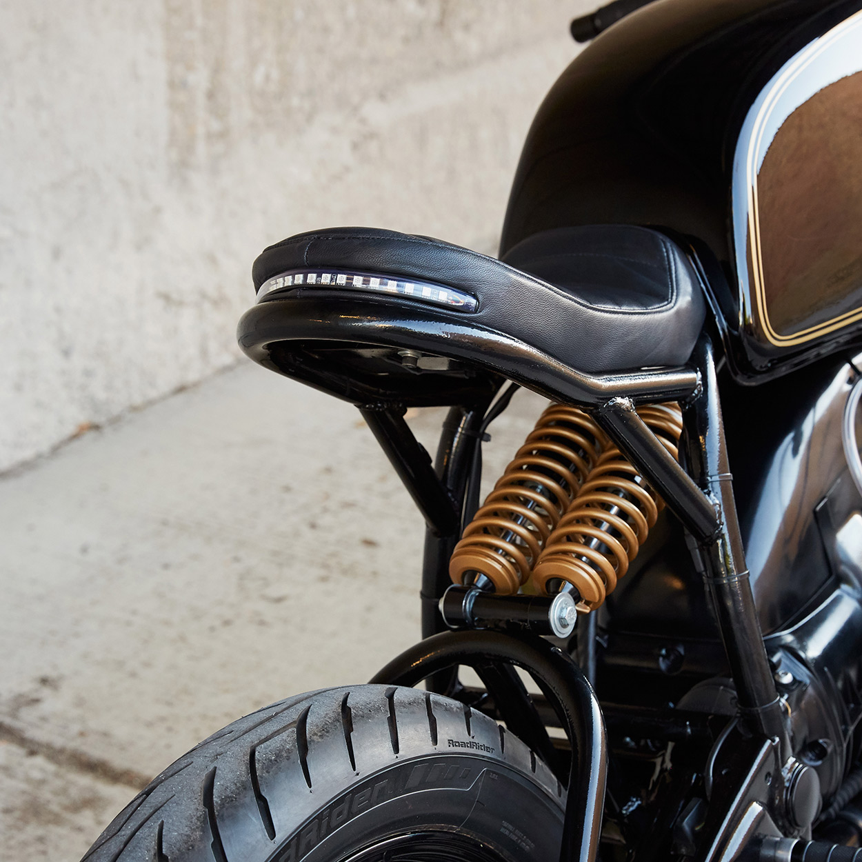 Exceptionally well made with a hint of retro vibes, the Federal Moto Five Motorbike has a slimmed down airhead, which does away with the original bodywork with the important exception of the fuel tank. You’ll find plenty of eye-catching new features on this custom job such as a front fender, airbox hole cover and ‘S’ fairing from Boxer Cafe. The headlight fits perfectly in, capped off with a mesh guard for added protection and the overall look and feel of this bike is hard to top.