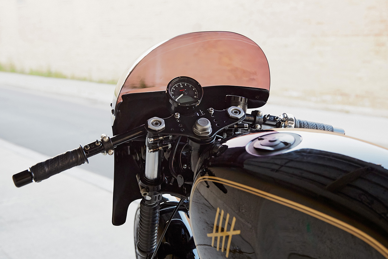 Offering an incredibly smooth ride, the Five Motorbike boasts a completely redesigned subframe which takes its design inspiration from Bryan Fuller’s exceptional Super Duc scrambler. This cracking contraption has a sporty stance that makes it immediately rideable and stand out from the crowd and in the cockpit you’ll discover a strikingTommaselli throttle, Brookes leather grips, a digital Koso combination speedo and tacho and, last but no means least, Posh Japan mini handlebar switches for the perfect finishing touch to proceedings.