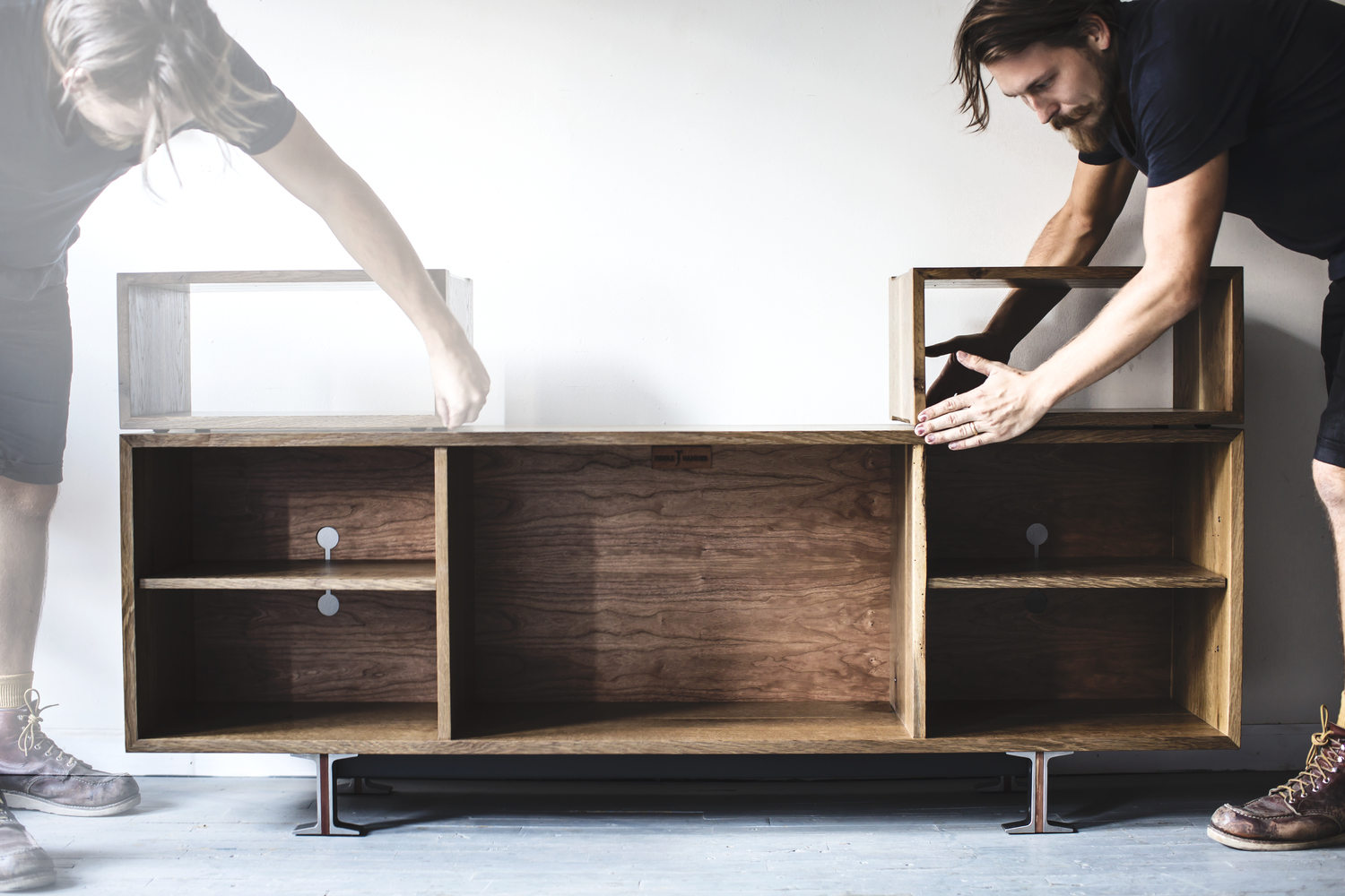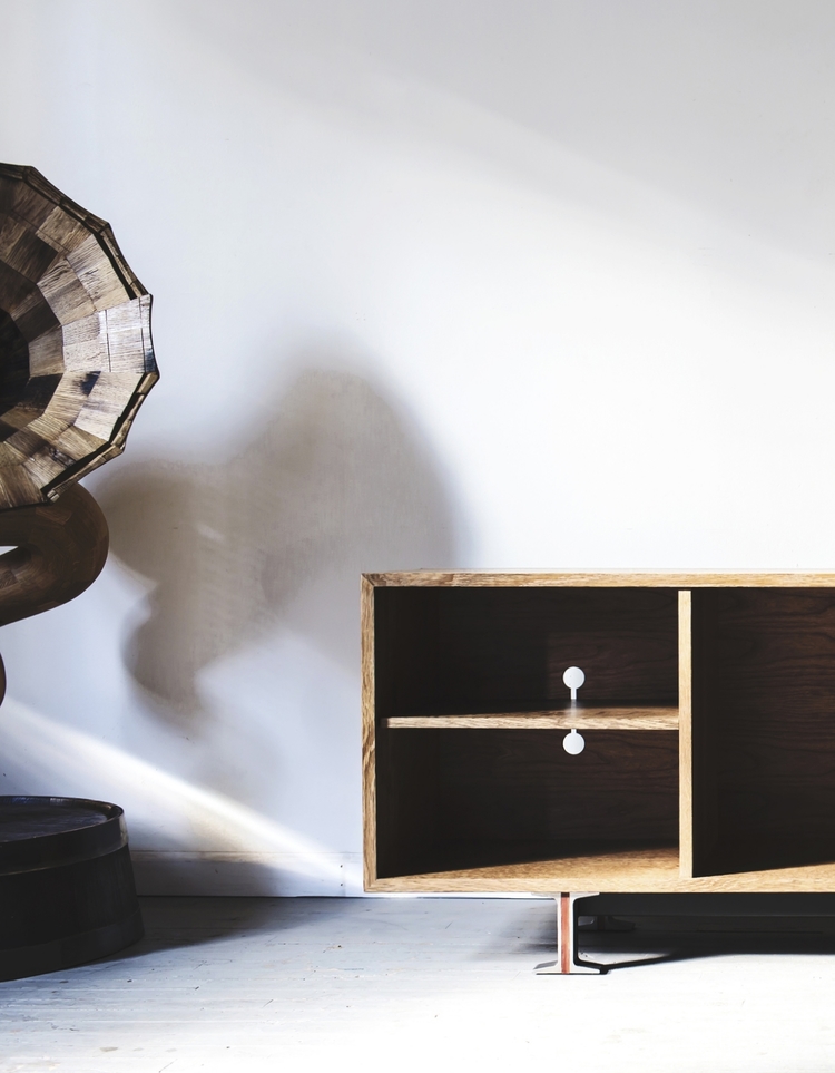 Fiddle + Hammer are a Milwaukee based design studio and furniture company that dedicate themselves to the crafting of handmade heirloom quality furniture. All of their wares are made from the finest materials possible, utilising traditional joinery methods alongside a striking contemporary aesthetic. The pieces represent a real love of wood, music, and a rich industrial past in the United States and the stunning Lawton Record Cabinet is a first class expression of their considerable talents.