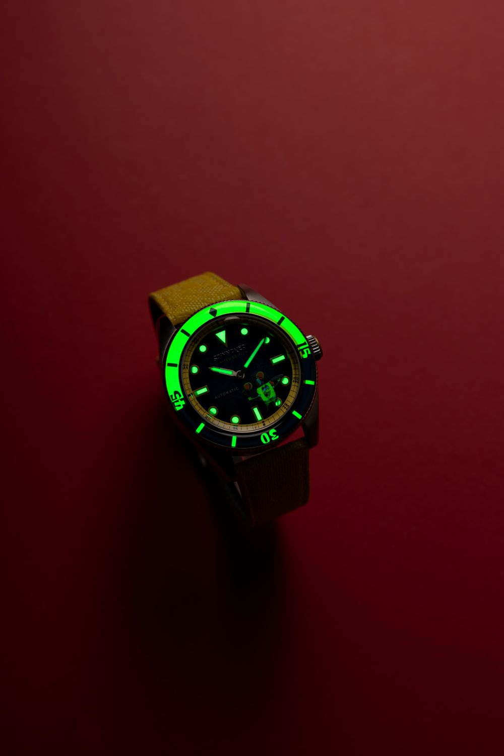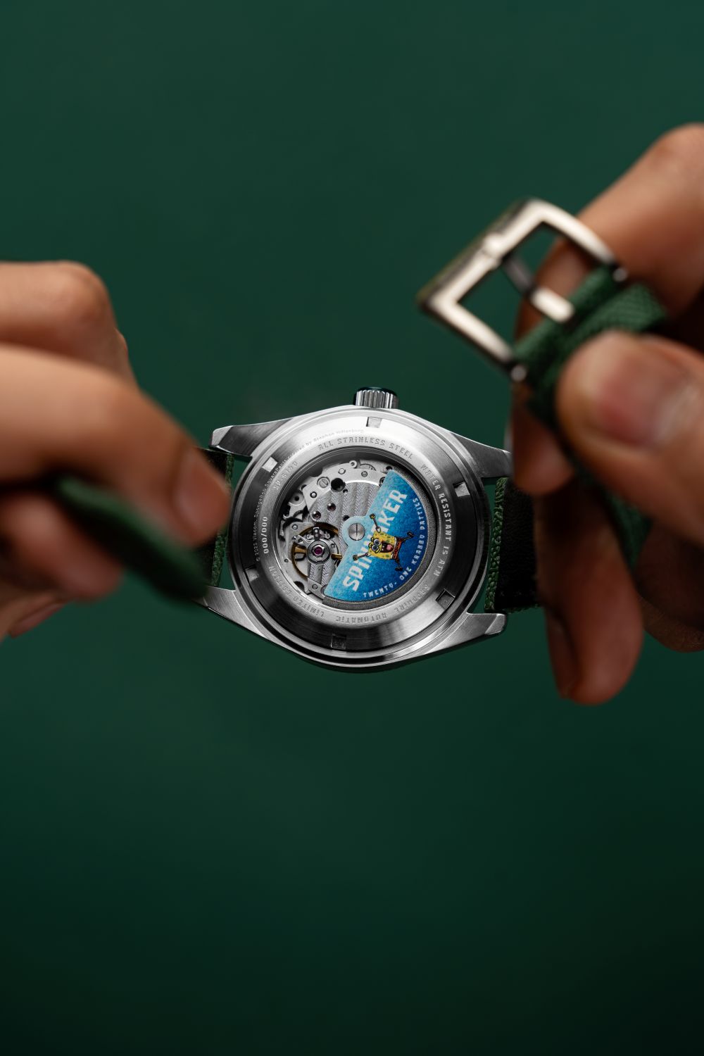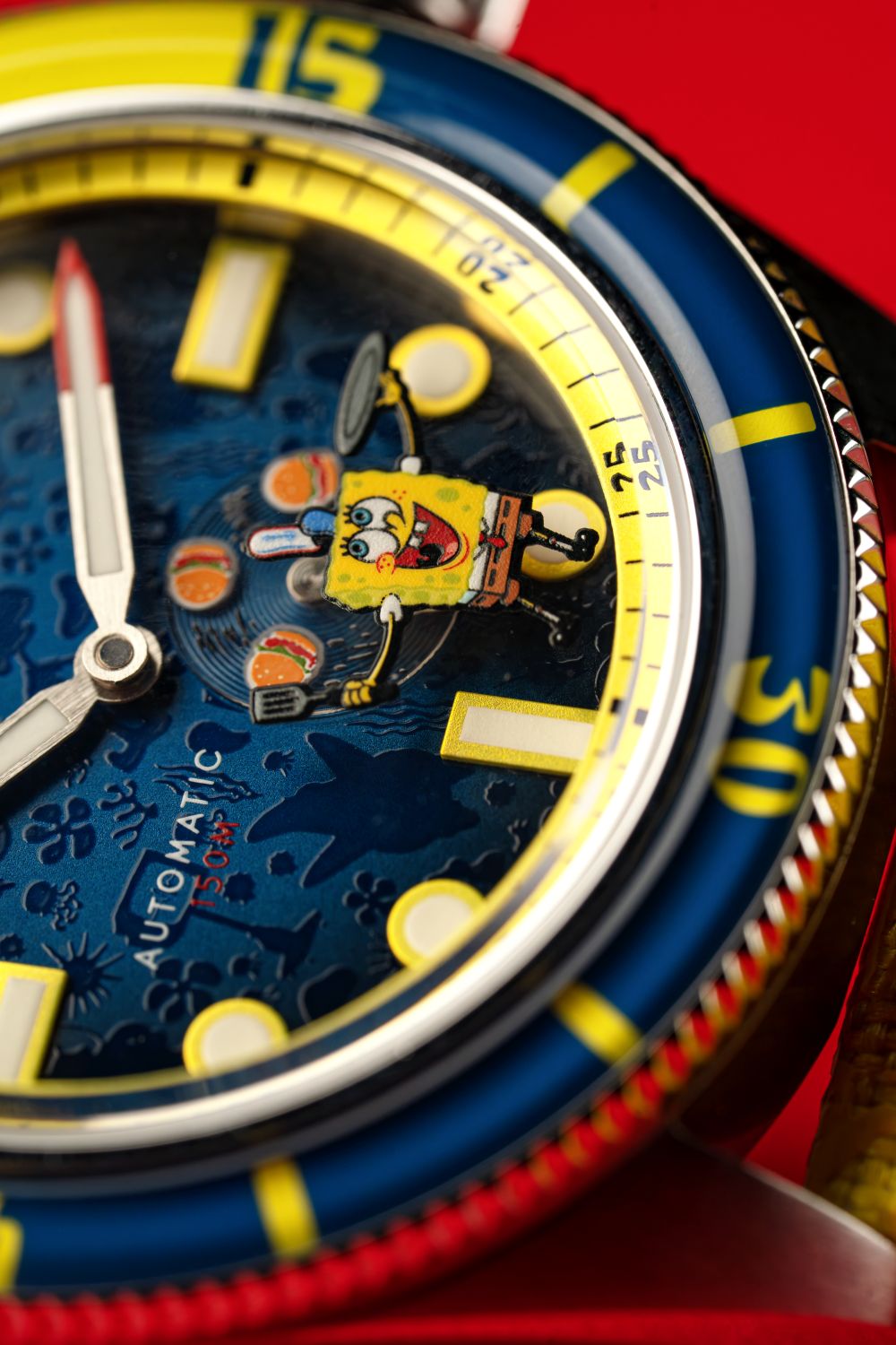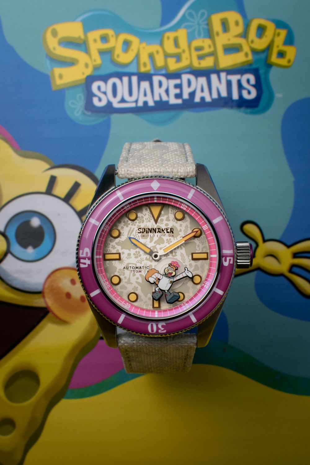 Each timepiece in the collection is powered by a precise Japanese 2-hand movement, subtly enhanced with a refined small seconds hand, adding a touch of traditional horological detail to the inherently whimsical design. True to Spinnaker’s diving watch heritage, legibility is paramount, with the bezel and dial generously treated with Swiss Super-LumiNova, ensuring a vibrant and enduring glow in low-light conditions – a functional imperative for any serious dive instrument, and a playful nod to the bioluminescent depths of Bikini Bottom.
