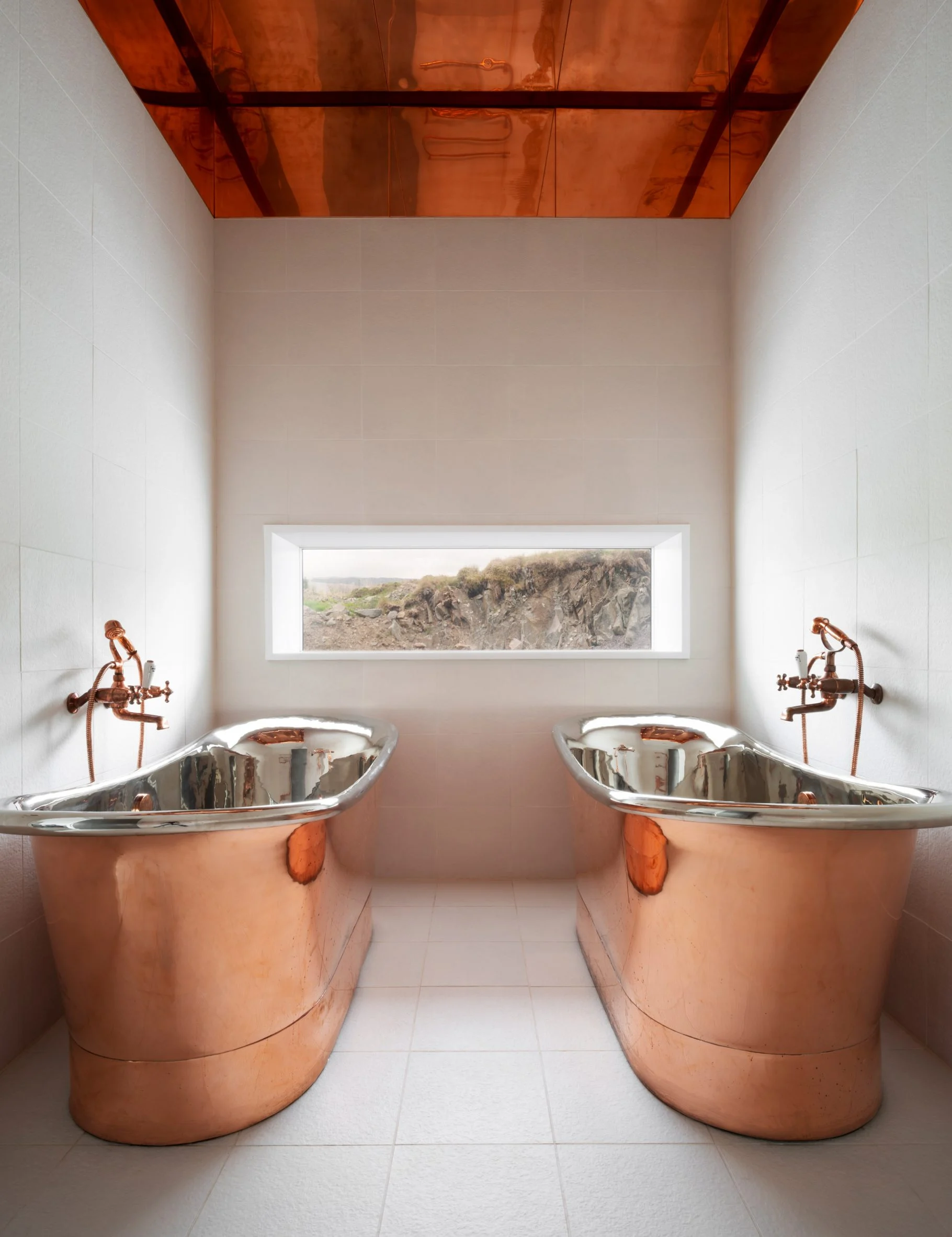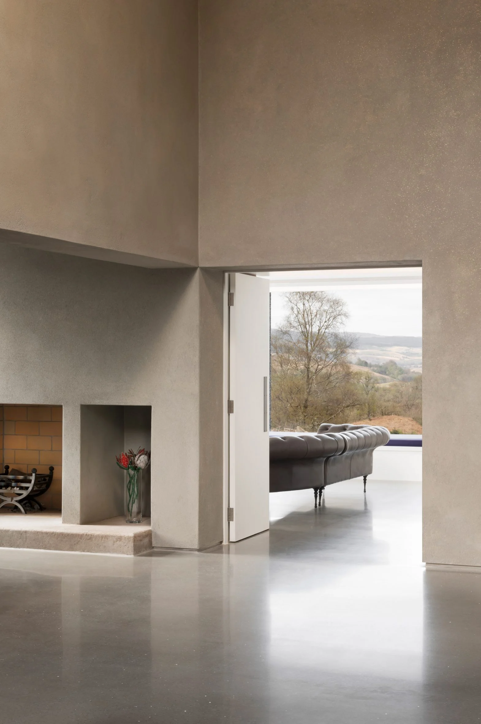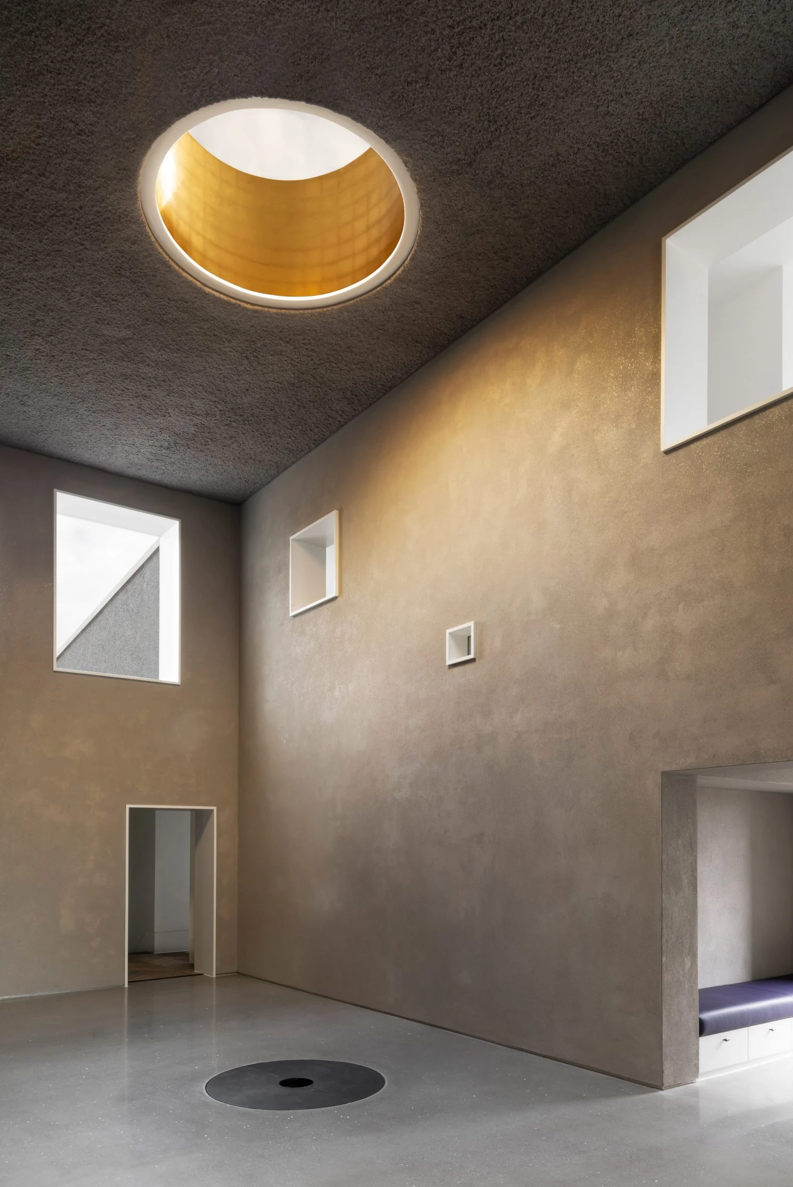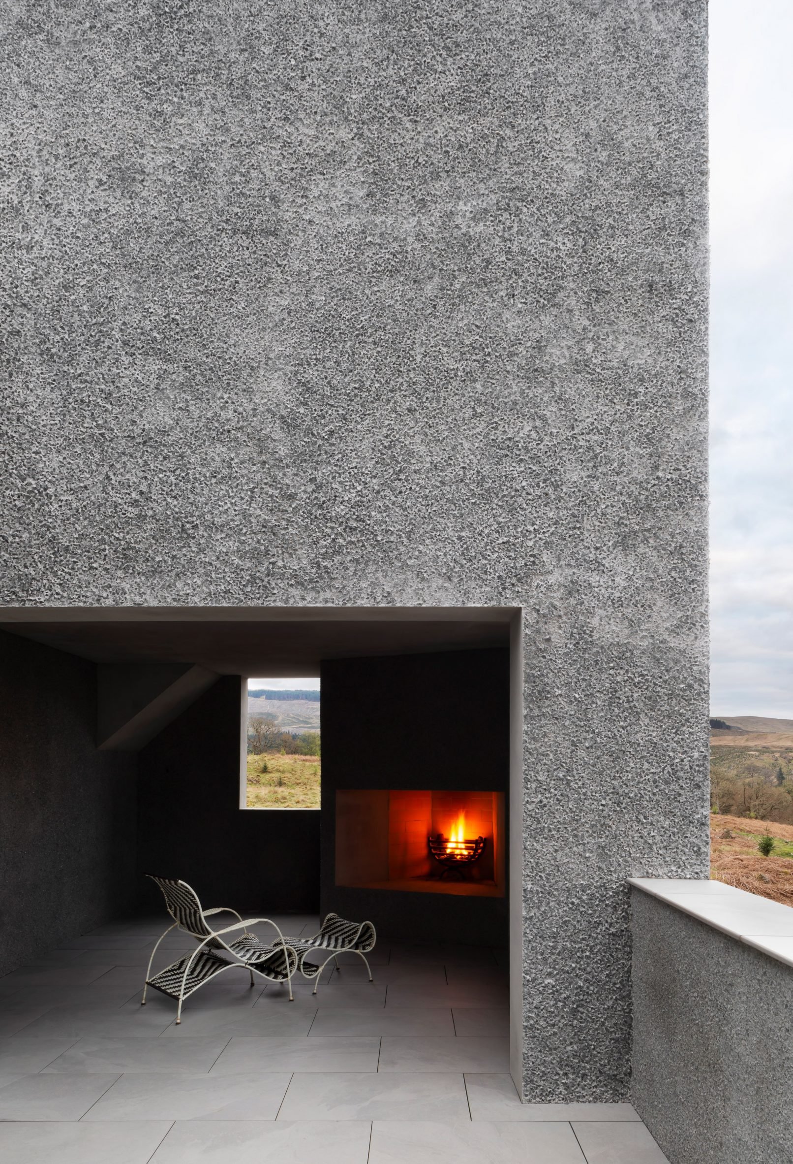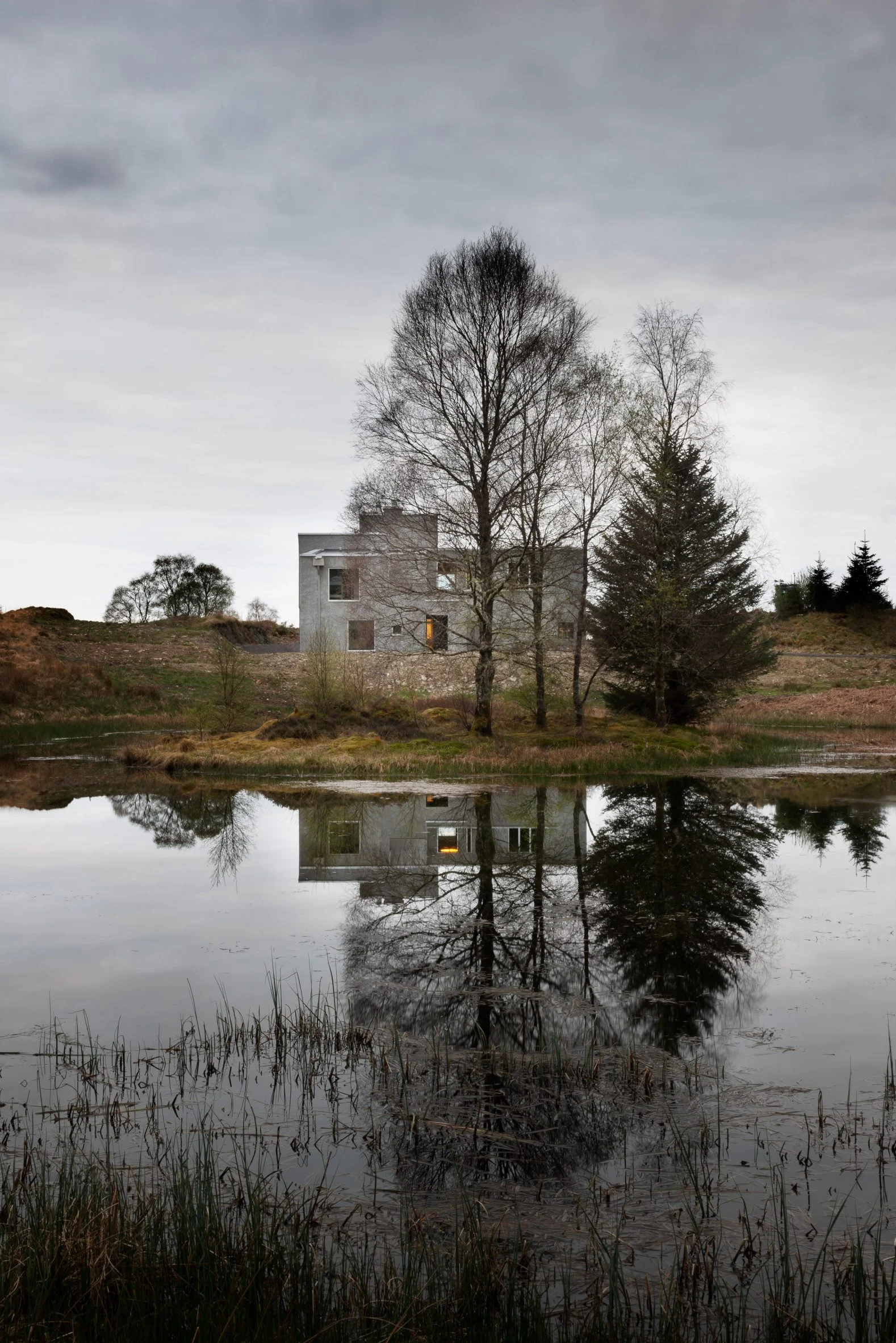 The castle-esque dwelling of Hundred Acre House from Denizen Works was designed for a couple with six children on former Forestry Commission land with its own private lake and the architects behind the build have lowered the house into a hollow in the landscape, a move that makes it appear as though it emerges out from the ground on the north and south elevations.