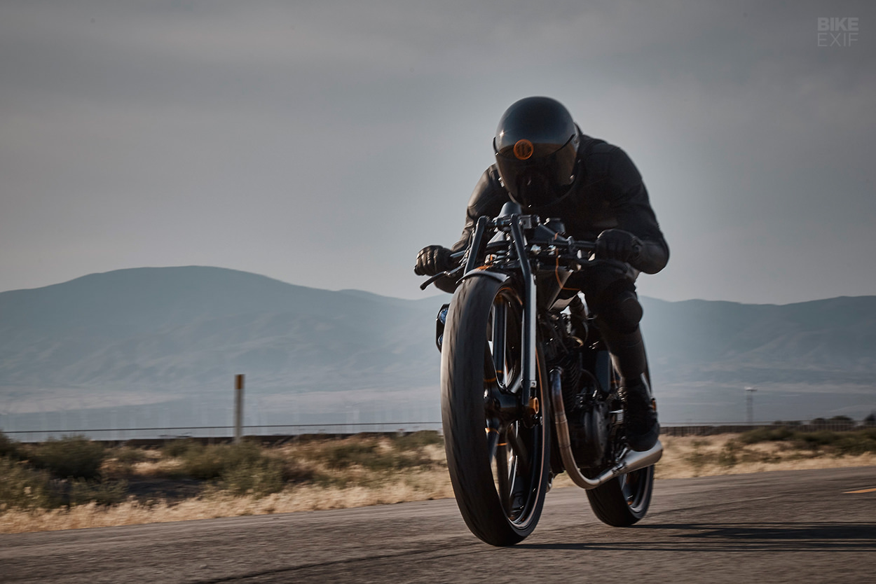Crafted around the engine of a 1981 XL500, this amazing looking machine from Niki Smart is not your typical after-hours project and this is proven in the fact that it took over ten years to finish and had an army of bike specialists helping deliver the out of this world machine you see before you. Design inspiration came from images of boardtrack racers that Niki saw at an exhibition as he had never seen anything like the near-50 degree banking of the American board tracks and it inspired this majestic looking creation.