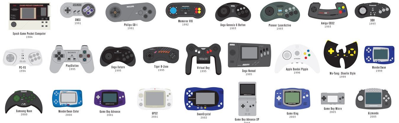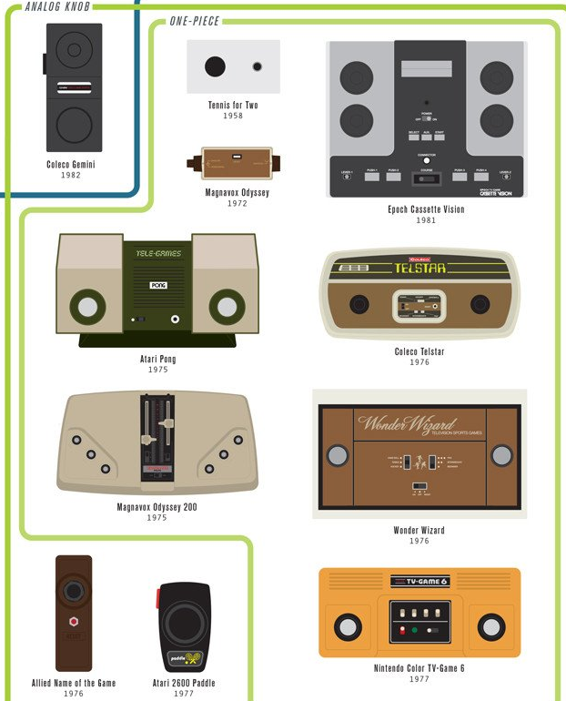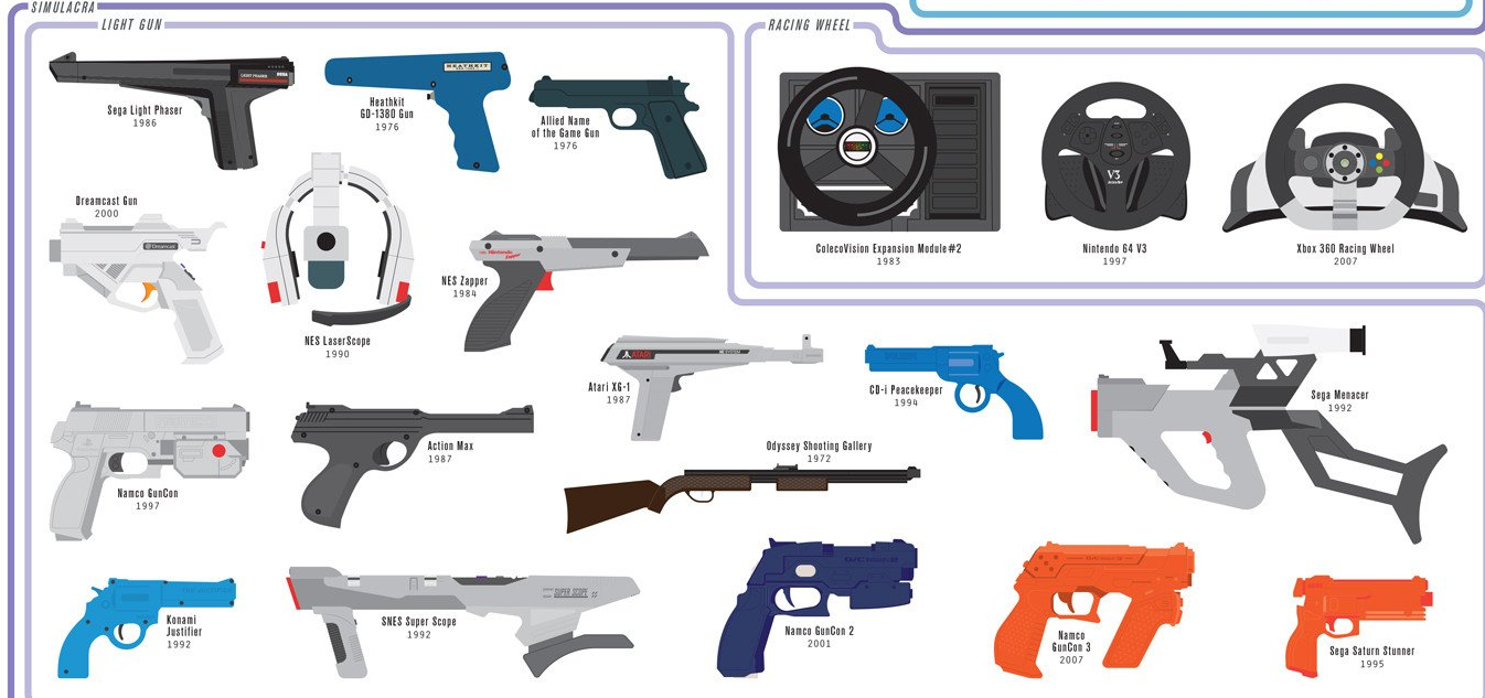 Needless to say, there have been an awful lot of consoles finding their way onto shelves, and into homes, over the last few decades and almost as important as the design of the consoles themselves was the look and feel of the controllers they had and this great print from Pop Chart Lab does a superb job of celebrating the diverse nature and design of controllers over the last thirty years or so.