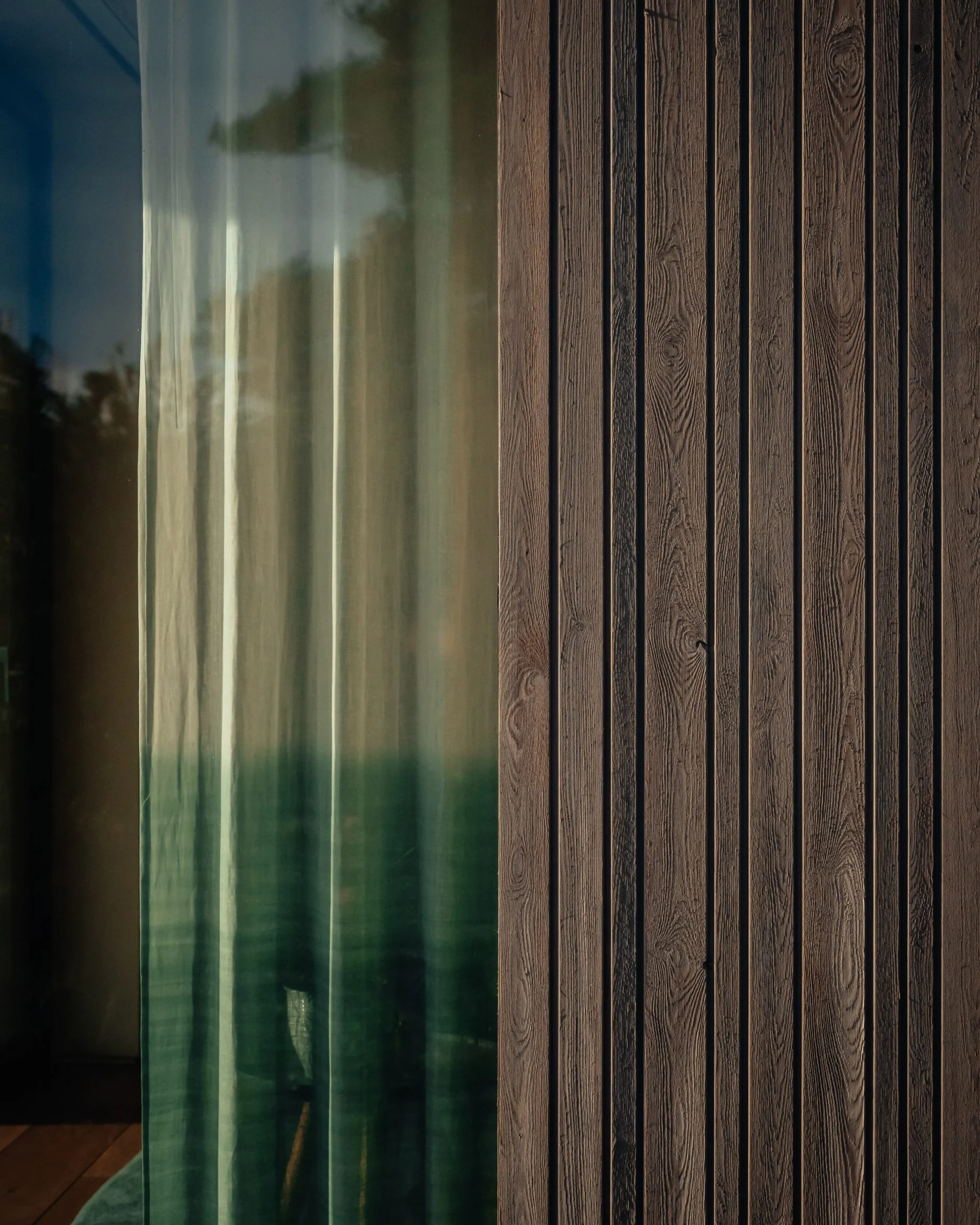 The material palette of Tidal House is a direct response to its coastal context. Natural finishes are used throughout, giving each component of the building a distinct character. The robust north-facing volumes are clad in a smoked clay brick, providing a sense of solidity and permanence. In contrast, the lighter south side features wood that will weather gracefully over time, reflecting the natural processes of the surrounding environment.