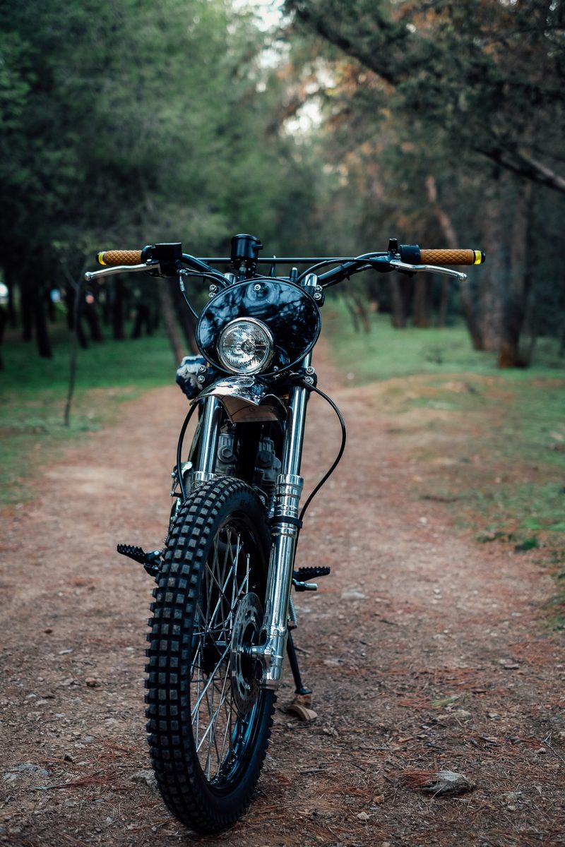 The Honda XR250 brought a platform that delivers the performance that Mike and Tom, founders of Urban Mechanics, were looking for. From there, the front forks were lowered and the wheels re-laced with new spokes. They were then fitted with Mitas trials tires. The wiring was reworked to accommodate a small Lithium-ion battery, a new speedometer and new ignition. Urban Mechanics also re-jetted the carburetor, added a silencer from BIltwell and an extension designed to quiet the engine even more.