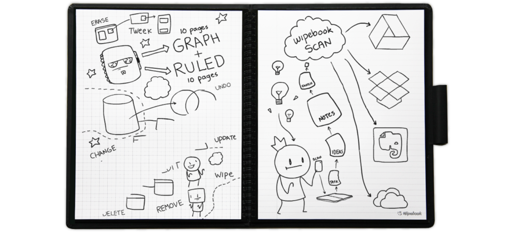 Undoubtedly one of the best reusable notebooks on the market, the Wipebook Pro+ is pleasingly affordable and retails for just $49.99 for a 8.5″x11″ notebook that you’ll be able to use time and time again. This is so much more than just a note taker, the Wipebook Pro+ cloud connected tool that allows you to capture your ideas effortlessly and keep them secure in the cloud whenever you want to revisit them. It is the ideal tool for whiteboard people who need a whiteboard everywhere they go. With a mix of graph & ruled pages, use your sleek new wipebook to work things out, save to the cloud and wipe old sketches completely clean.