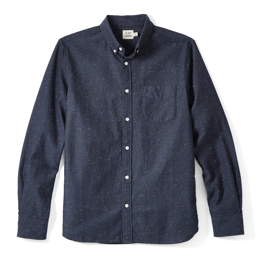 This one’s cut from a Donegal fabric that’s woven with small neps in the yarns that gives it a rugged aesthetic from afar but gives you a super soft feel up close. The approachable design is reminiscent of a classic Oxford, but FNT added reinforced elbow patches, a split back yoke, and a side vent gusset that’s commonplace in hardwearing workwear pieces.