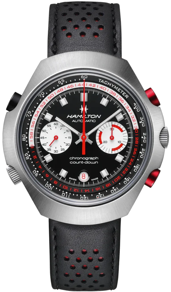 The Hamilton Count Down is a bold and daring watch that is sure to turn heads. Based on the Chrono Matic E, it is limited to 1972 pieces and features a 48mm case that is not for the faint of heart. The reverse panda dial is a signature Hamilton-style statement, and the bold red accents underscore the dynamism of this multifunctional timekeeper. The countdown scale gives the watch its name, and it is powered by the H-31 automatic movement.
