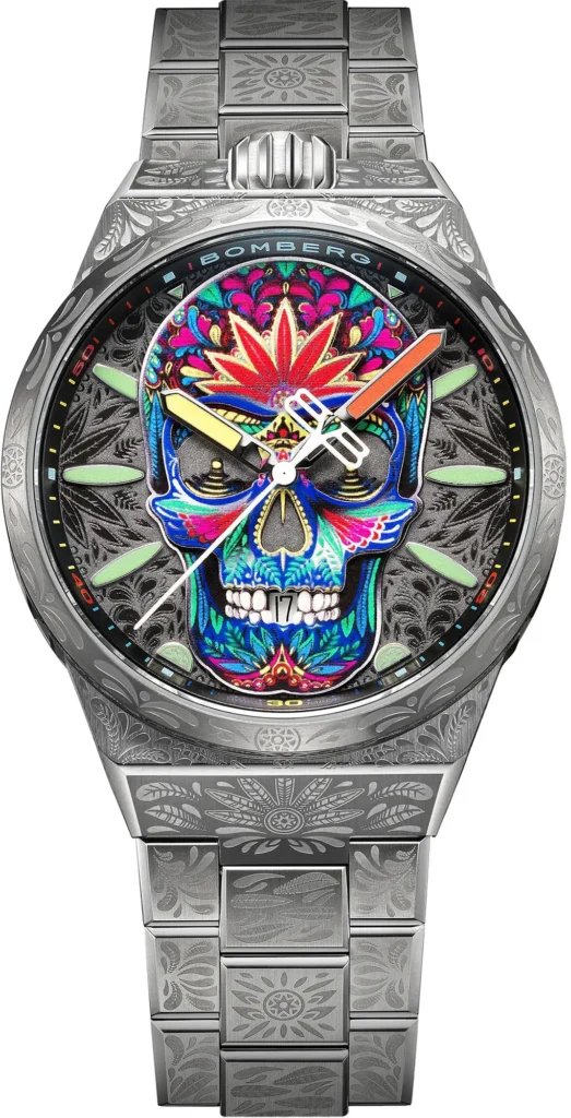 The watch is a stunning fusion of two iconic symbols: skulls and tattoos. The bright and colourful motif in relief on the dial, and the masterful engraving on the case and bracelet, make it a true work of art. It is like a tattoo artist’s canvas comes to life, and is sure to turn heads wherever you go.