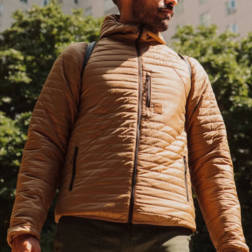 The shell of the Filson Ultralight Jacket is built with 1.5-oz. Cordura® ripstop nylon weighs next to nothing and allows the jacket to be packed into its own pocket for easy stowage. For extra protection from weather and wear, Filson added an additional reinforcing layer over the shoulders.
