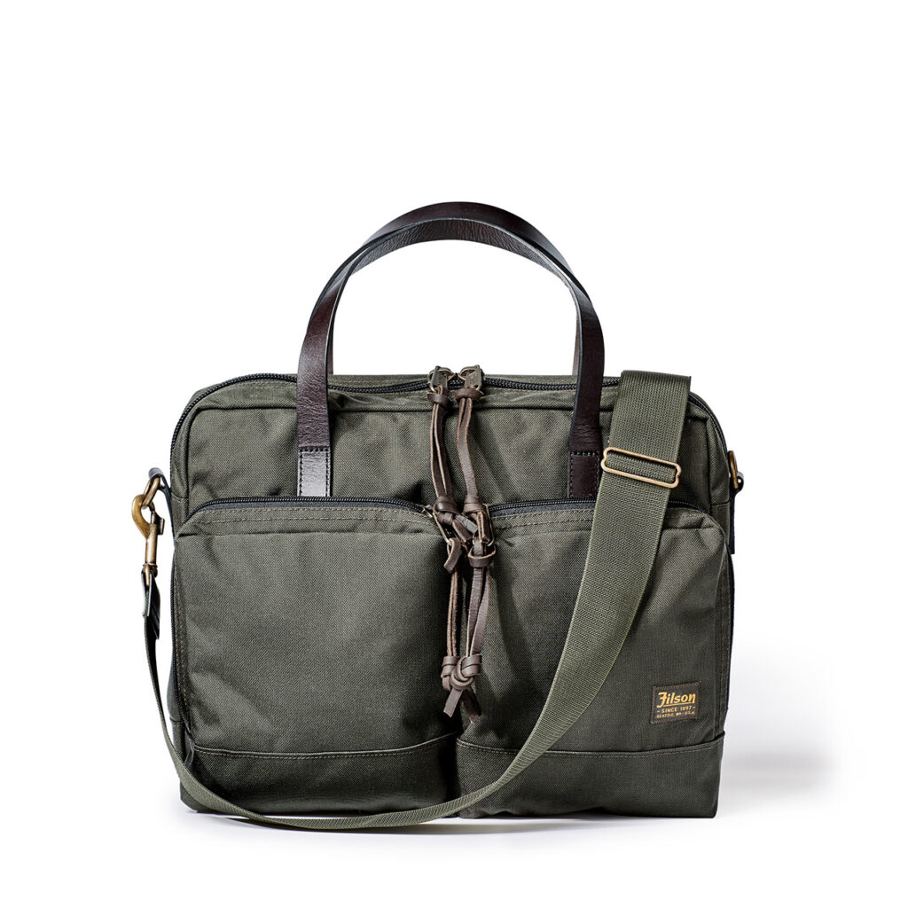 Filson has been committed to quality materials since they began outfitting fortune seekers for the Klondike Gold Rush in 1897. One of their most refined materials is Rugged Twill, a tightly woven, lightly waxed fabric that is the foundation for their hard-wearing travel bags. Some of these bags have traveled over a million miles and are still going strong. The Rugged Twill Tote is an easy, all-purpose bag that can handle everyday errands, off-site work days, and regular travel.