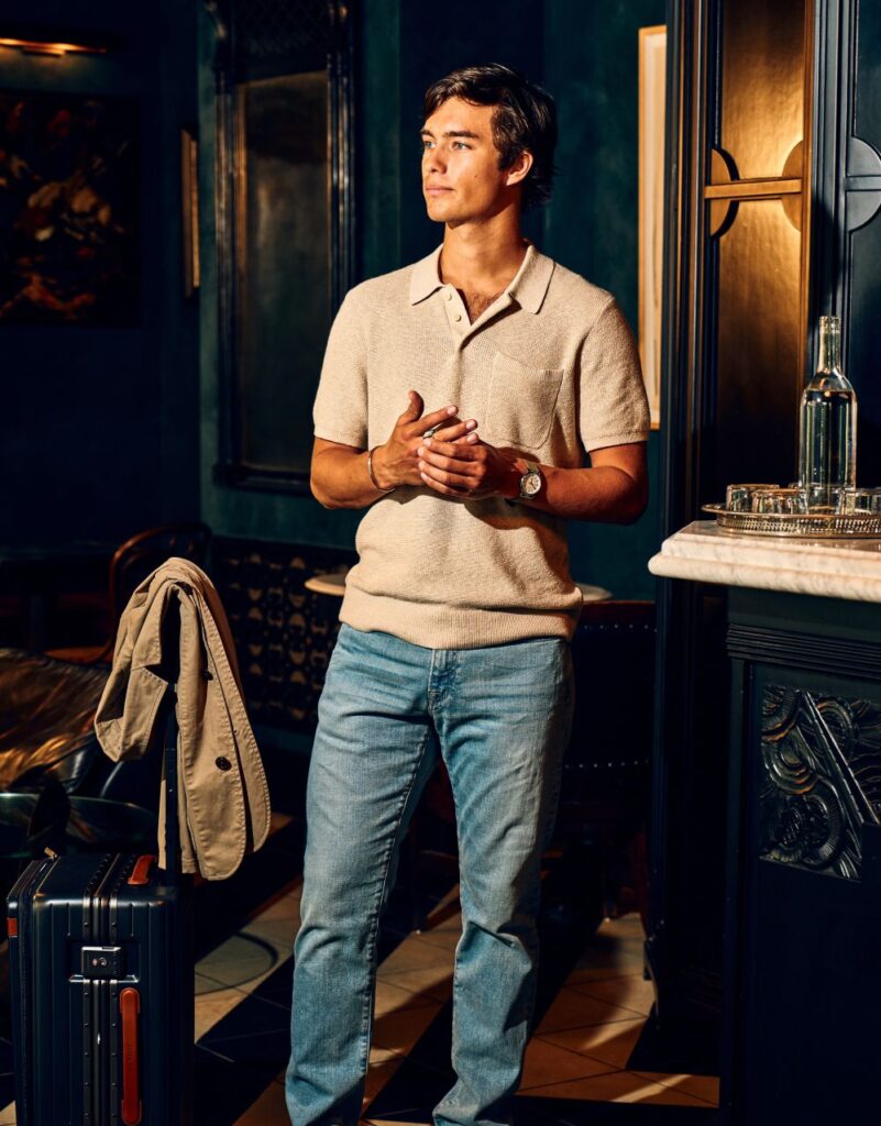 Made from a comfy cotton-linen blend, Flint and Tinder’s Sweater Polo Shirt has a unique patterning that will elevate your outfit while keeping the mood relaxed. Subtle ribbing at the cuffs, bottom opening, and chest pocket give the silhouette a considered finishing touch.