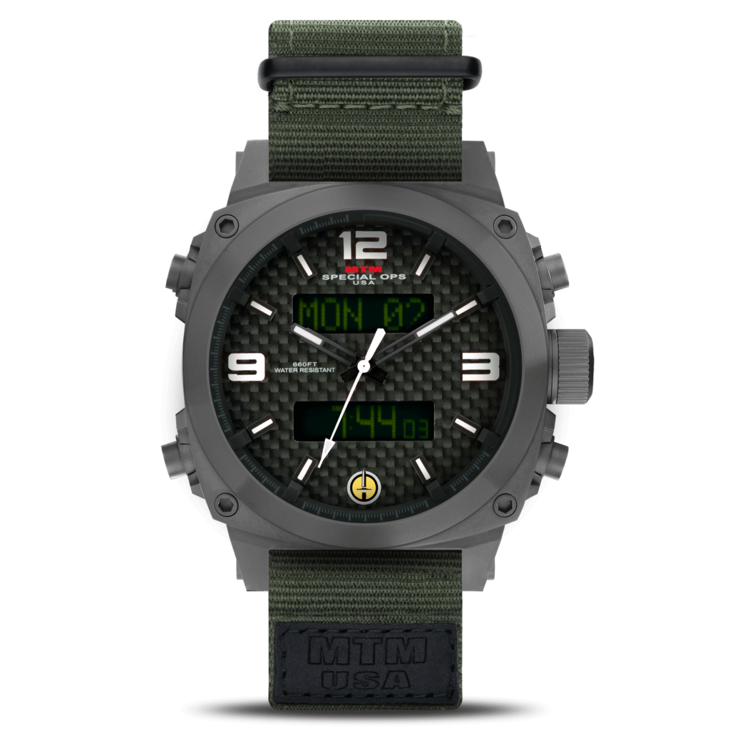 The MTM Grey Air Stryk I is a reliable, rugged wrist watch that is crafted especially for men. Two LCD displays show off many of the watches features: chronograph mode, up to 5-daily/scheduled alarms, 58 presets + My City (user-defined), and more. Its solid stainless case and sapphire crystal glass is more than capable of reaching depths up to 660 feet/200 metres. Last but not least, the luminous hands offer easy readability at night.