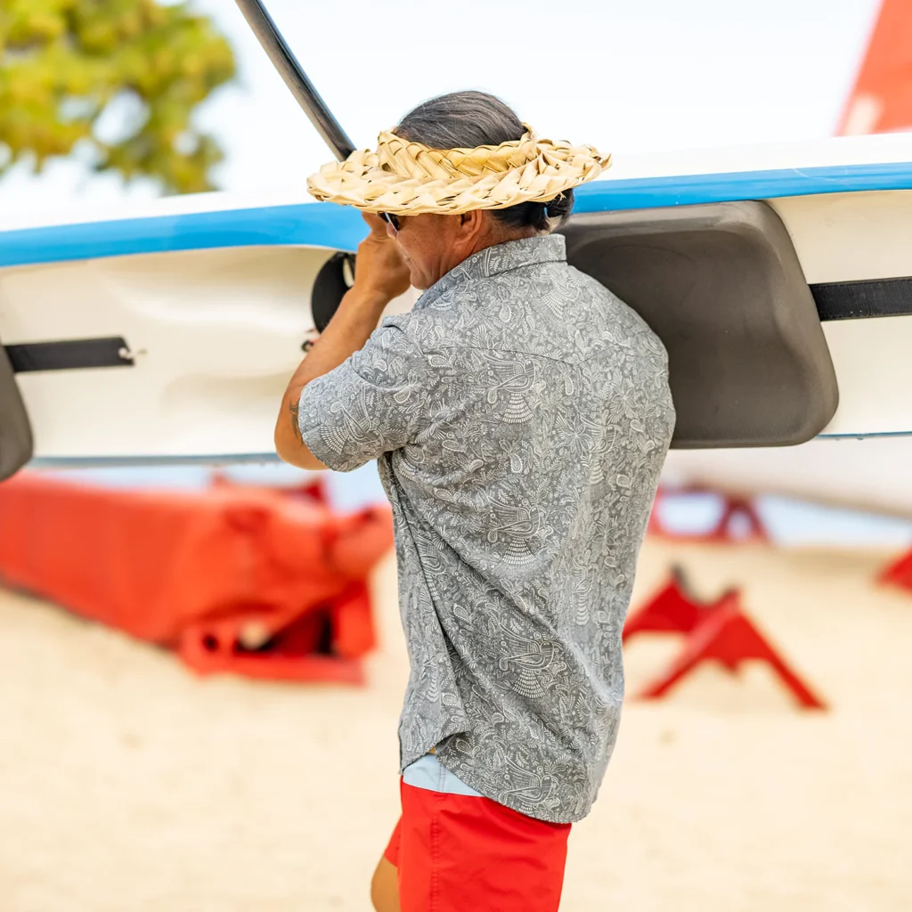 Western Aloha honours legendary textile designer John “Keoni” Meigs in this edition of Western Aloha’s vintage collection. Printed on a 4-way-stretch performance fabric that is lightweight and moisture-wicking.