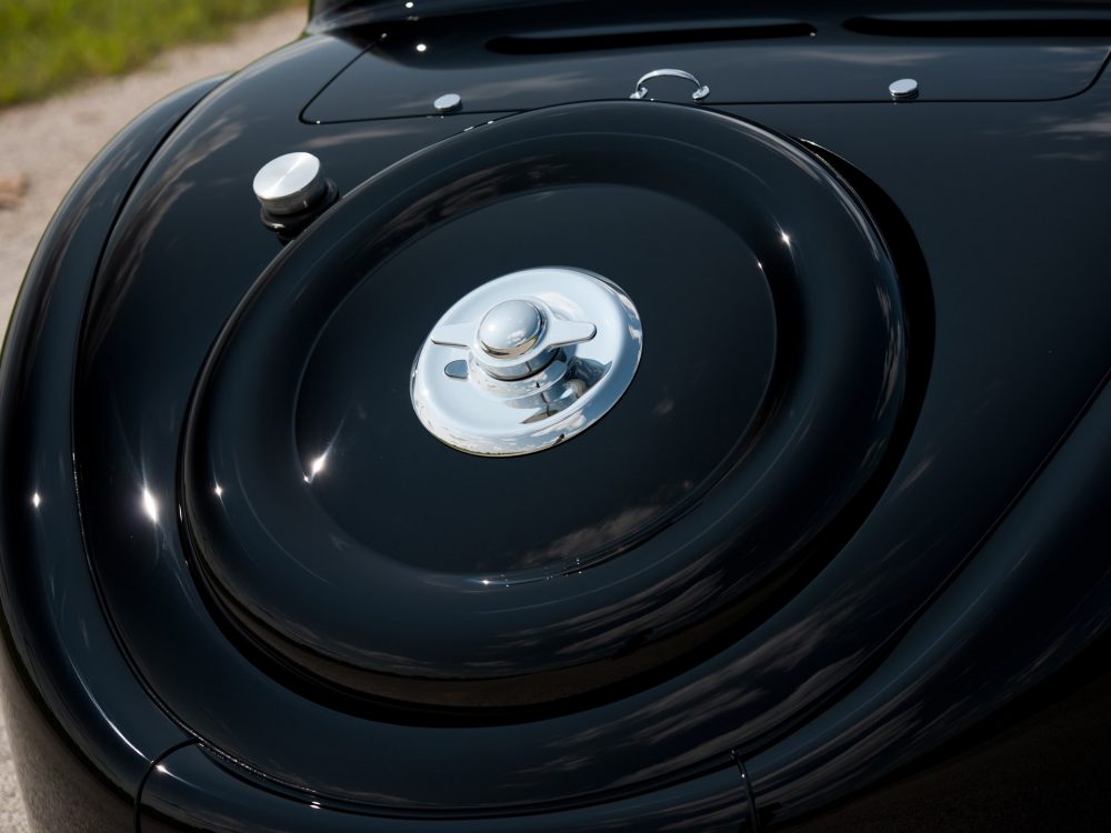 During its ownership, the engine of the 1937 Bugatti Type 57SC Atalante was upgraded to the most desirable Type 57SC specification, with the addition of a late-production five-bladed supercharger. Several elements of the Atalante were returned to the original configuration, and this included re-creating the original pair of small rear windows and taking out some of the chrome embellishments that had been added in France in the during the 1940s. Completed in 1976, it earned the ultimate accolade for quality, appearance, design, and performance: Best of Show at the 26th Pebble Beach Concours d’Elegance.