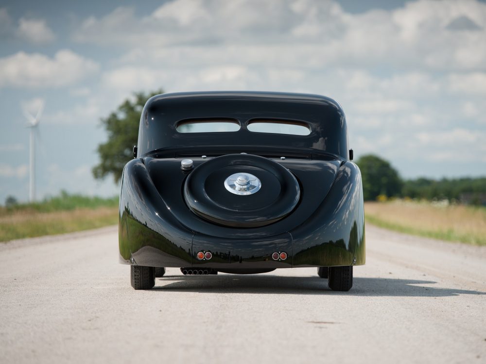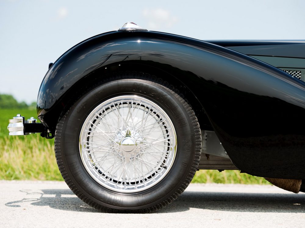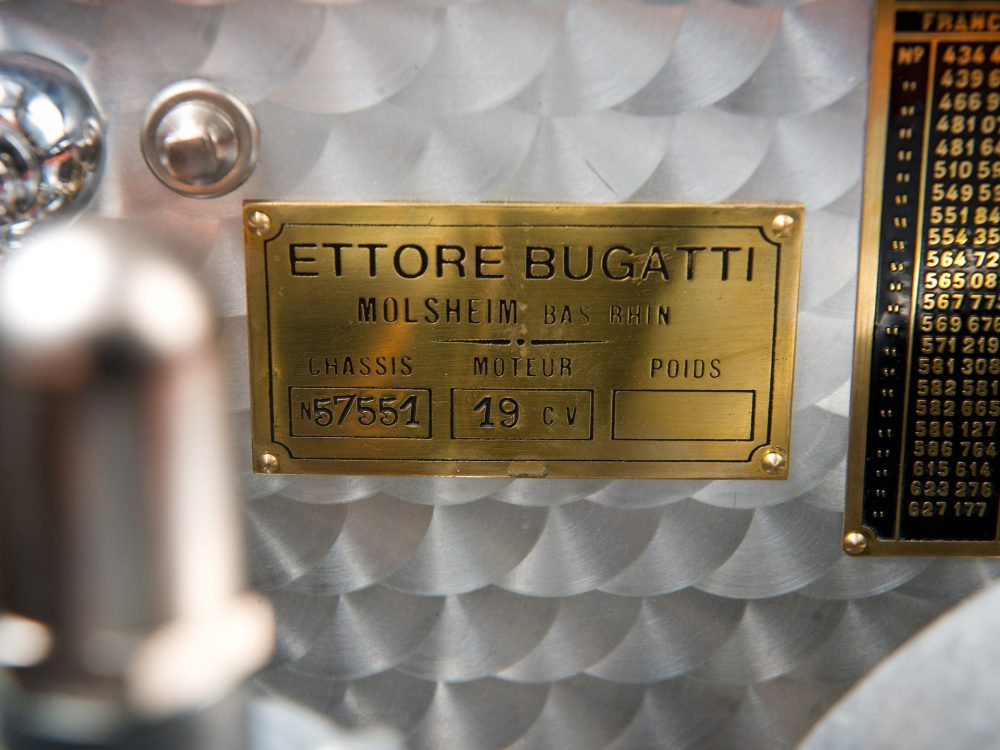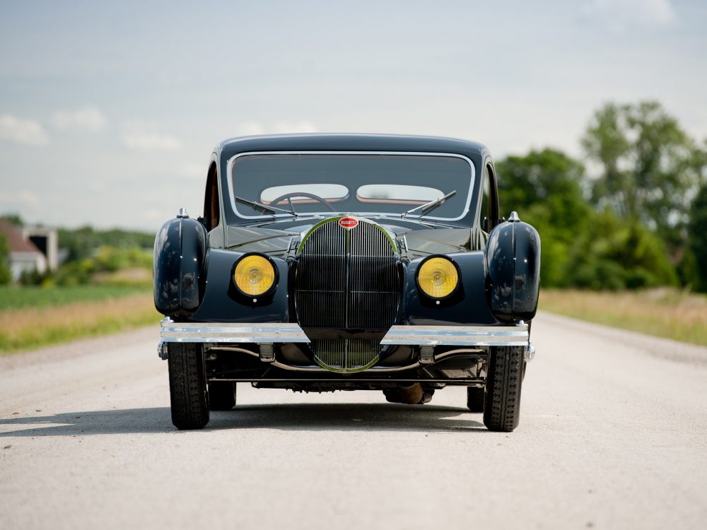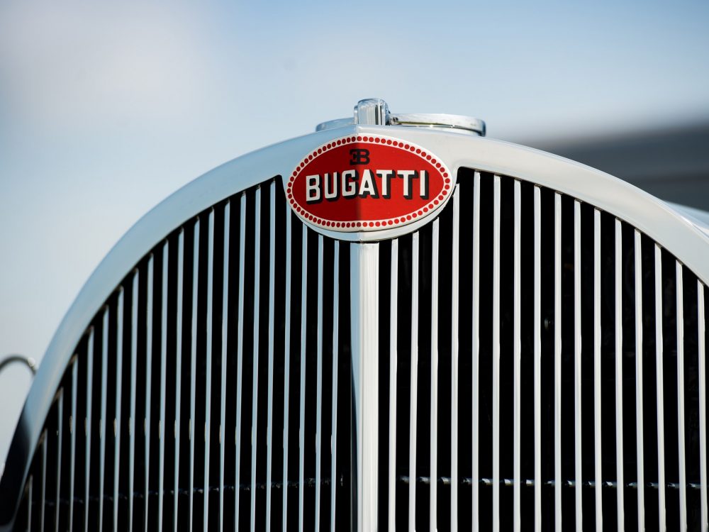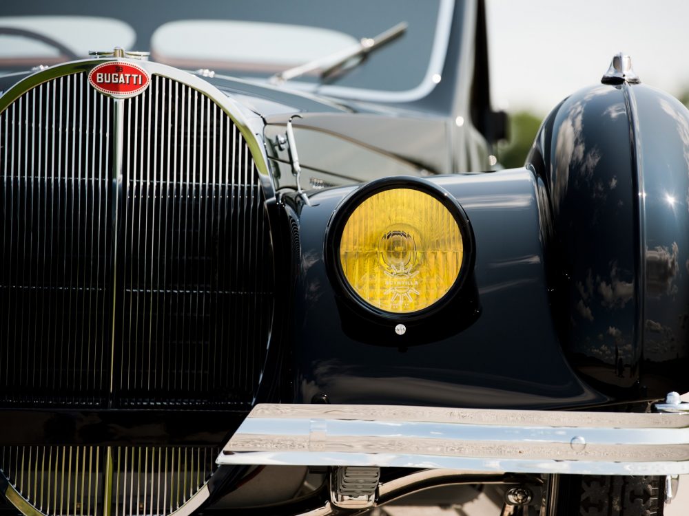 Absolutely astounding visually, the 1937 Bugatti Type 57SC Atalante from RM Sotheby’s was completed on 23 July 1937 with an Atalante body which was finished in black with luxurious, pigskin upholstery. The body configuration, with its low headlight placement between the radiator and front fenders, was exactly the same as the October 1937 Paris show car. It was delivered by the factory just a week later to its first owner, Jean Lévy of Strasbourg, Deputy Administrator of the family owned “Grands Moulins de Strasbourg,” which was a successful grain milling company established by his father, and this is still in business to this day.