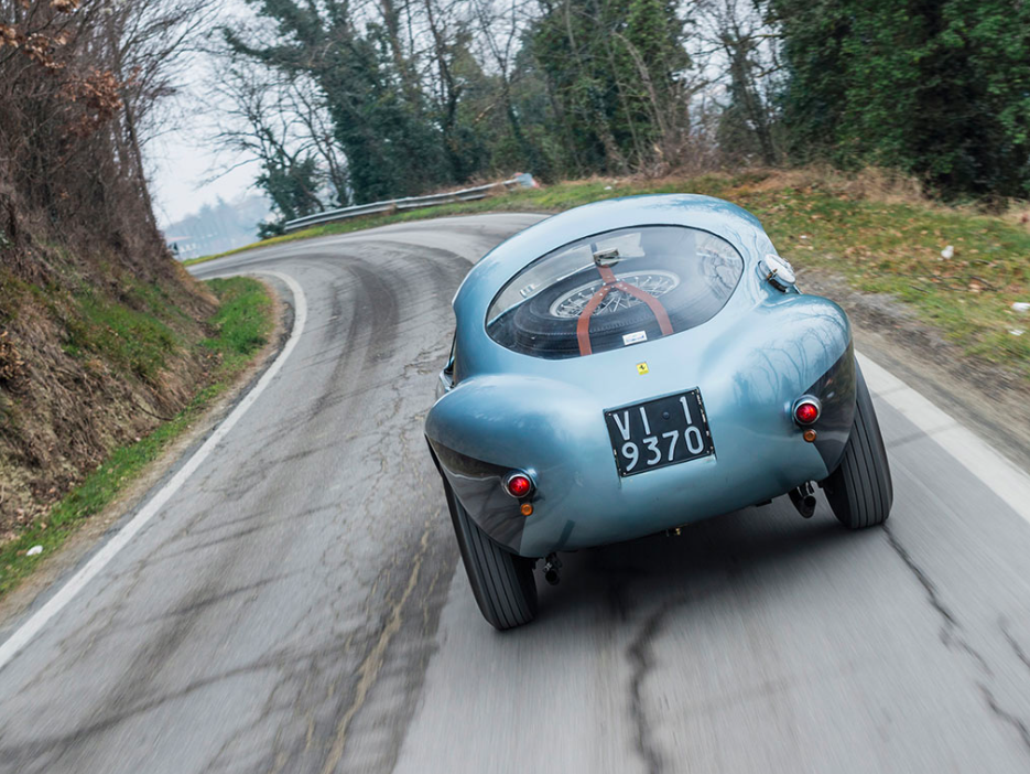 In order to achieve this spectacular look and feel with the 1950 Ferrari 166 MM/212 Export “Uovo” by Fontana, it took the silhouette of a jet, minus the wings. The bare Ferrari frame was superimposed over a tubular structure which was then reversed and bonded with Peraluman plates, which delivered a lightweight but incredibly robust exterior shell. Some 150 kilos lighter than other Ferraris of the time, this amazing contraption was fitted with twin shock absorbers and a regulator for its Formula 2 brakes to deliver its unparalleled racing performance.