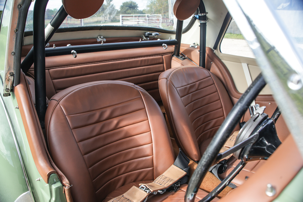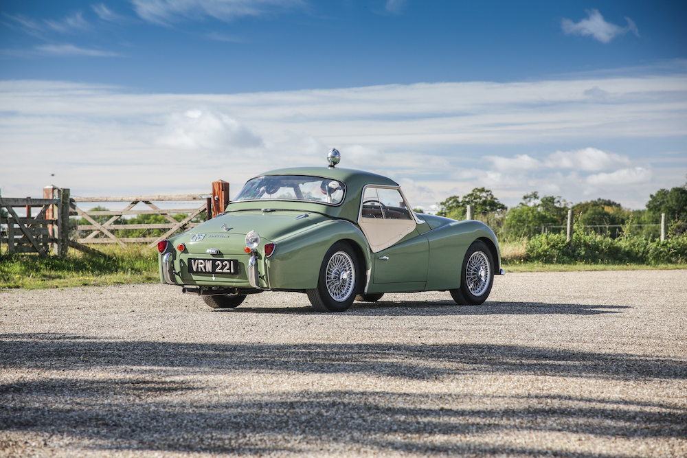 Presented as a matching-numbers example with its uncommon competition factory hardtop and boasting rare overdrive transmission – not to mention the fact it is still wearing its original colours of Apple Green over brown leather – this TR3A remains a highly significant racing car. Between 2018 to 2020, the Triumph was subject to over £10,000-worth of servicing and preparation work by Just Historic Cars, specialists in 1950s and 1960s racing cars and it is believed to be the only one of the 1958 Monte Carlo cars by Triumph still intact.