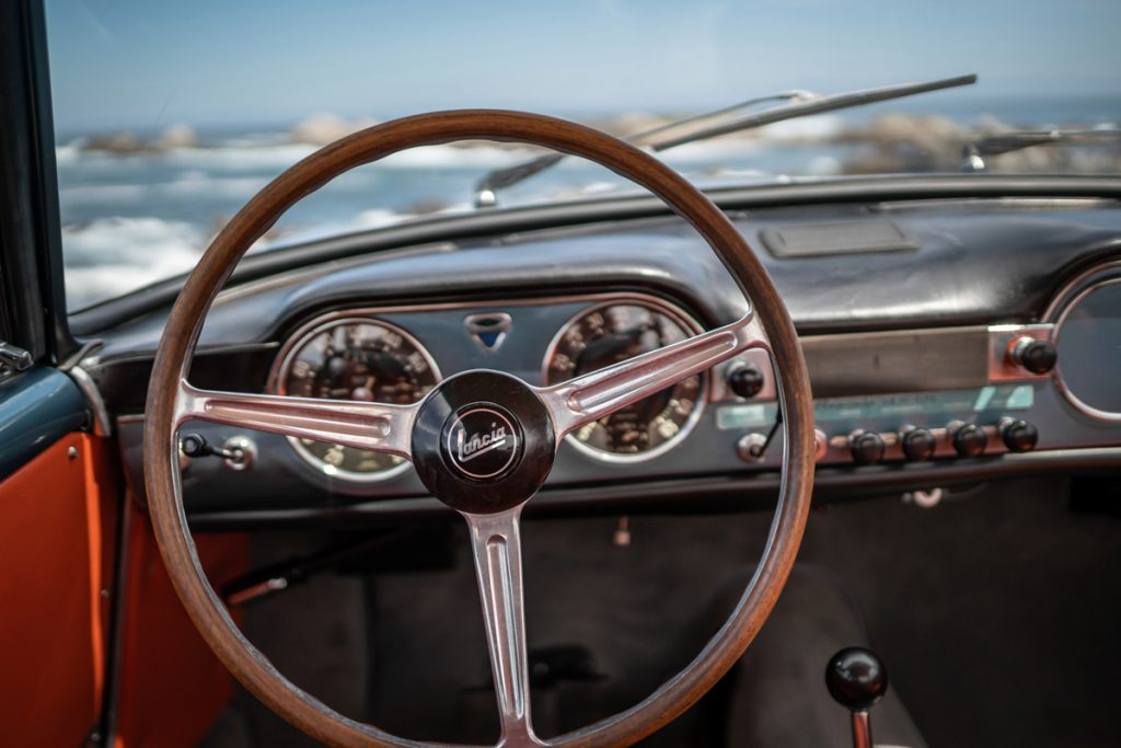 Originally finished in olive green, this spectacular steed was repainted in teal with a dark blue roof and features quad headlamps, chrome bumpers and trim, and a dual exhaust with polished finishers. The 400mm steel wheels features polished trim rings and Lancia-stamped hubcaps and wear 165-series Michelin tires. The car comes equipped with an independent front suspension and a De Dion tube setup in the rear, while braking is from discs at all four corners.