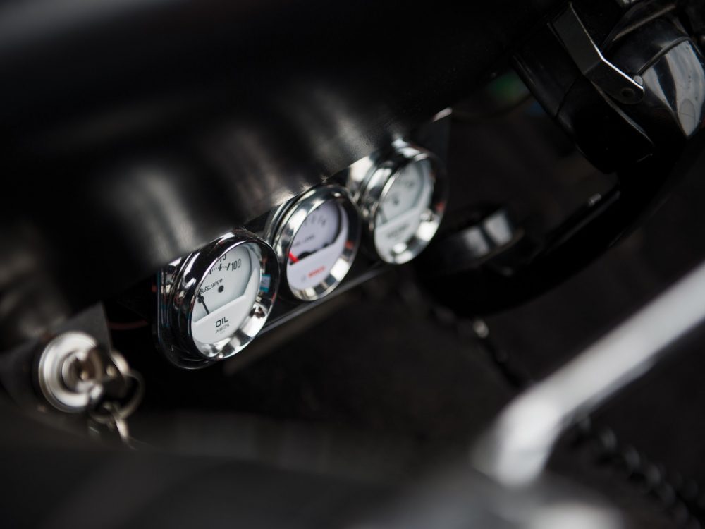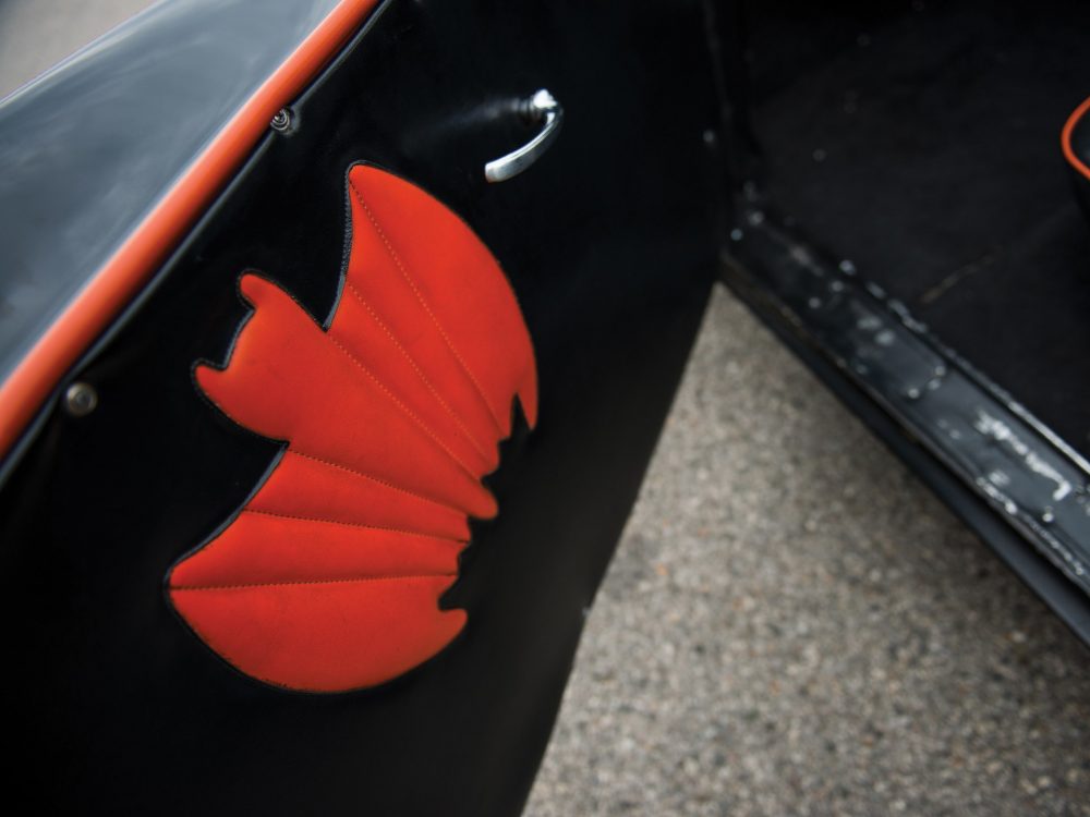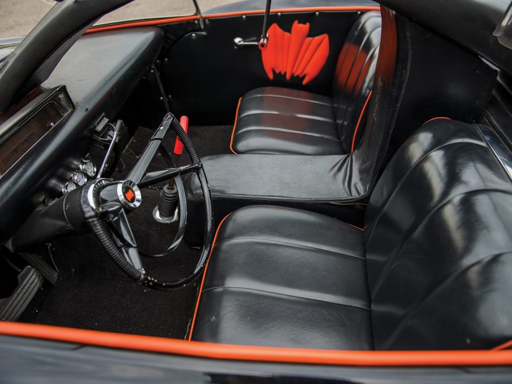 It’s important to note that this 1966 Batmobile Recreation was built on a 1959 Lincoln chassis with a hand-built steel body (as opposed to the less robust and reliable fibreglass). It is finished in the classic Batmobile livery of black with red highlight lines and boasts excellent looking Cragar wheels. The open cockpit is decorated with round windshields and the interior is tailored with black seats with orange piping, black carpet, a Bat-phone mounted to the dash, custom steering wheel, and Batman symbols on the doors.