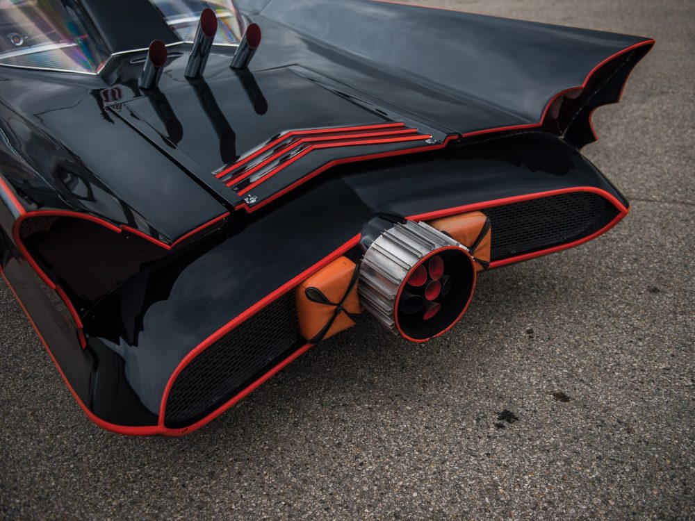 The beating heart of this Batmobile is a carbureted V-8 engine coupled with an automatic transmission and for those who want to relive the golden age of television sci-fi crime fighting with a well-traveled Batmobile that delivers as much excitement and style of the original George Barris interpretation, this is the RM Sotheby’s lot for you – now just the question of finding the $200,000 or so you’ll need to buy it. Tap up Bruce Wayne.