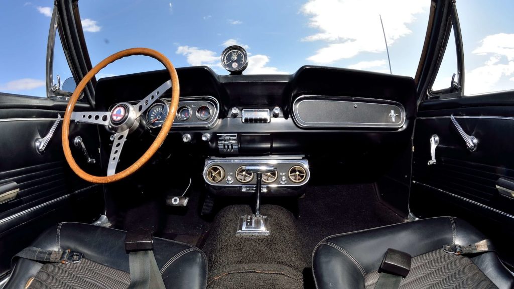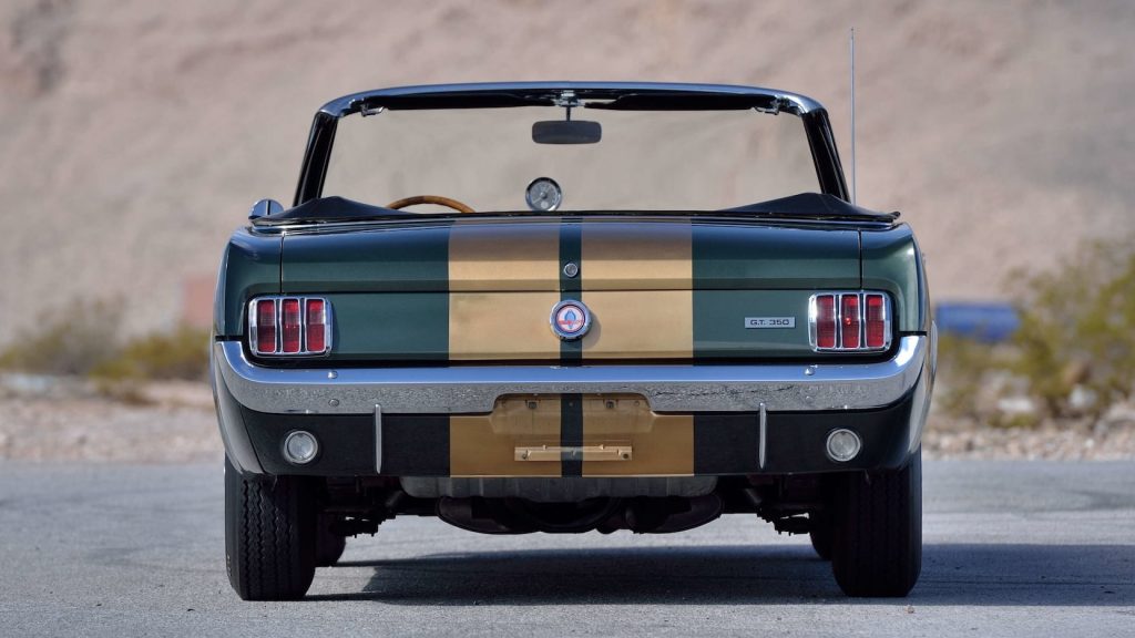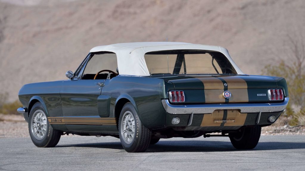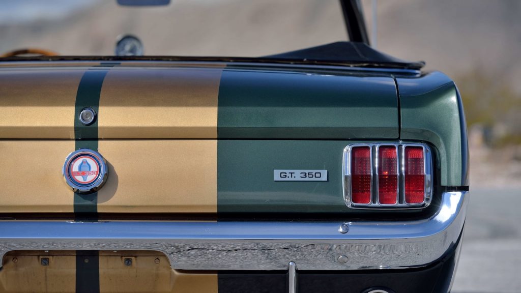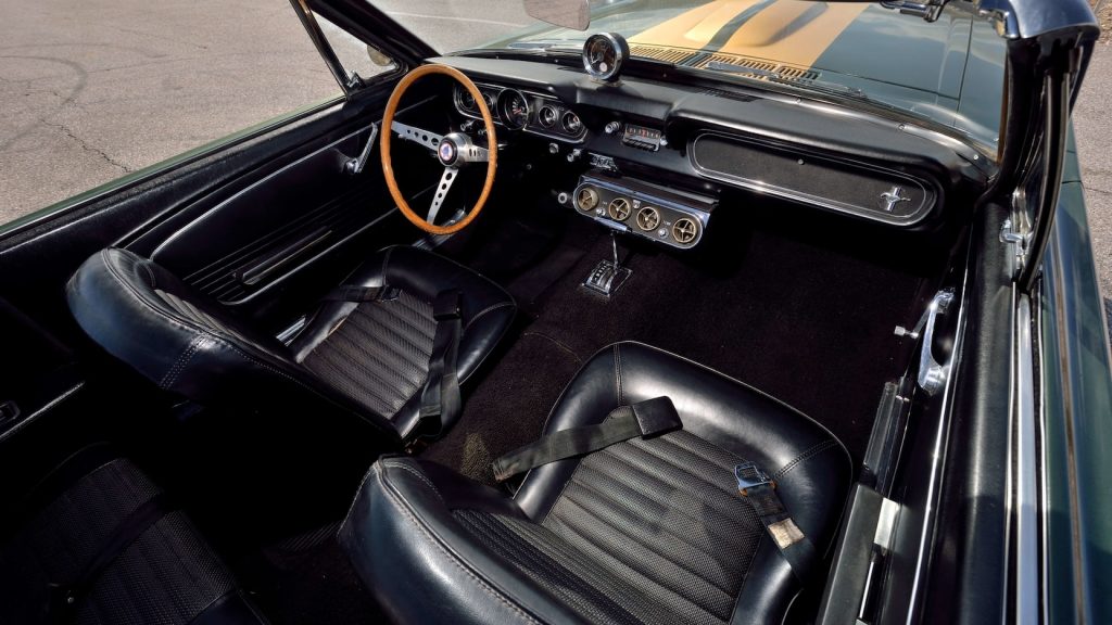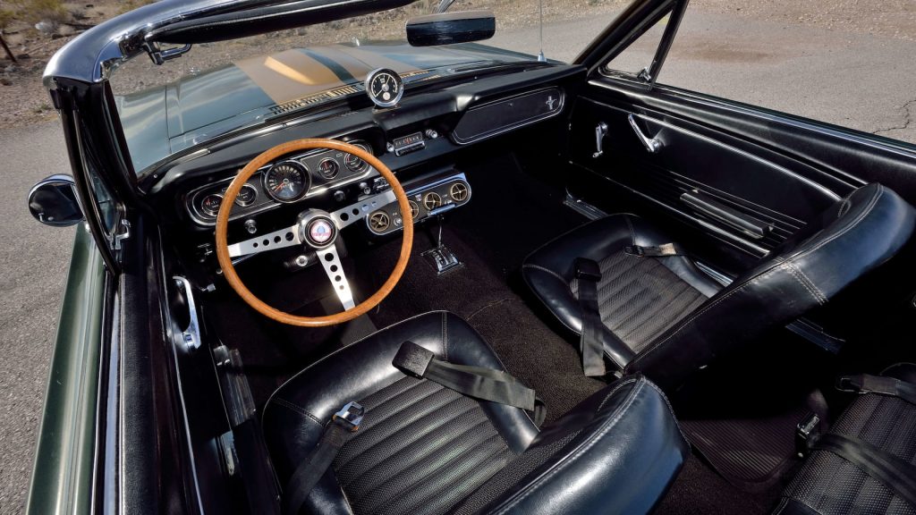 There are all sorts of cool features to be appreciated with this 1966 Shelby GT350 Convertible from Mecum Auctions not least the fact it was the Shelby American Factory pool car that was used for test purposes in anticipation of the 1967 ½ Shelby convertible and it appeared in the background of a photo in the December 7, 1967 issue of Autoweek with once controversial Hertz Gold rocker stripes clearly in view making it the only 1966 Shelby to have Hertz Gold rocker stripes with no “H”.