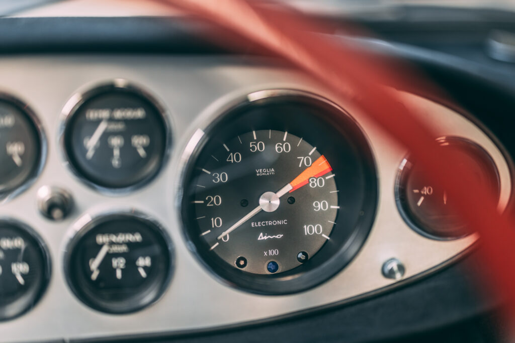Named after Enzo Ferrari’s beloved son, Alfredino, the Dino was a real departure from Ferrari’s big, thirsty V-12s and one of our favourites from the brand here at The Coolector. It was powered by a compact, race-derived, 2-litre V6, four-cam engine that is mounted transversely behind the driver, something never before witnessed on a Ferrari, as all were front-engined. Styled by Pininfarina with coachwork by Scaglietti, the Dino GT was, and still is, one of the most exceptional and striking designs ever to roll off the production line. And this is your chance to own one of the most out of this world examples.