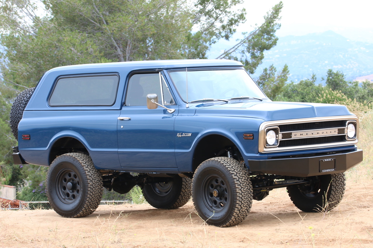 The 1970 K5 Icon 4×4 Reformer has a Mandrel bent, ceramic coated exhaust system alongside a GM ¾ ton 4L85E automatic transmission that makes for a mighty smooth ride day in, day out. This is joined by an Atlas II twin stick, part-time 4×4, shift-on-the-fly transfer case, power steering and Dynatrac custom built Dana 60 based axles. Ready for any adventure, it has custom suspension with Atlas leaf springs, Currie sway bars and Fox Racing shocks and rebounds.