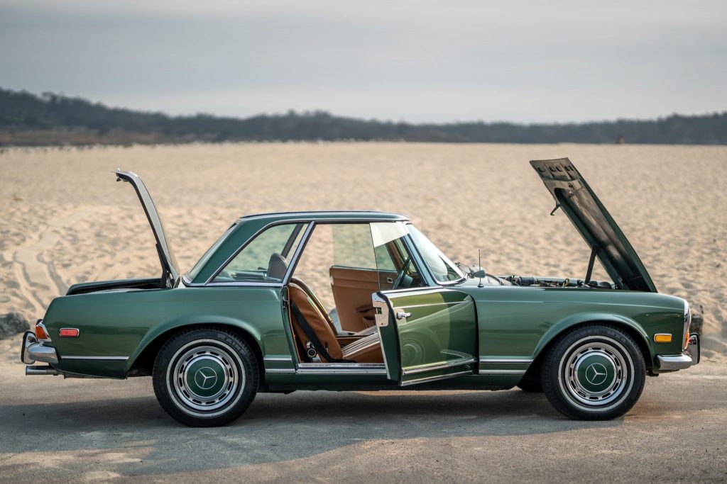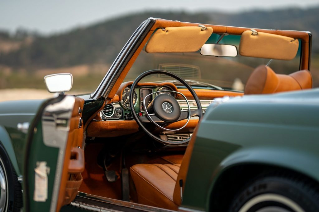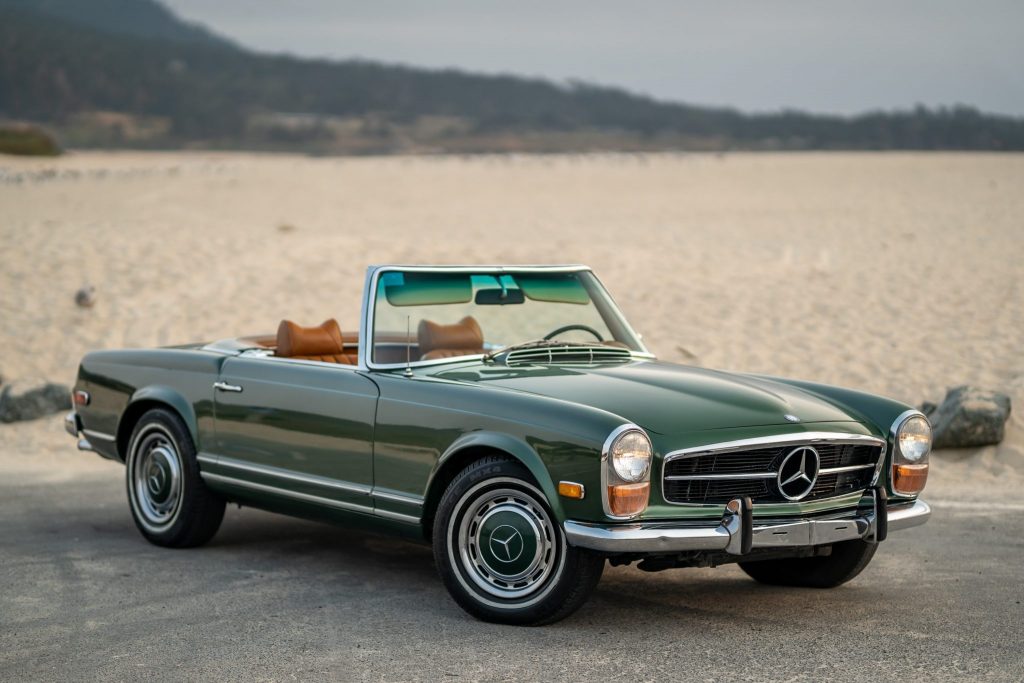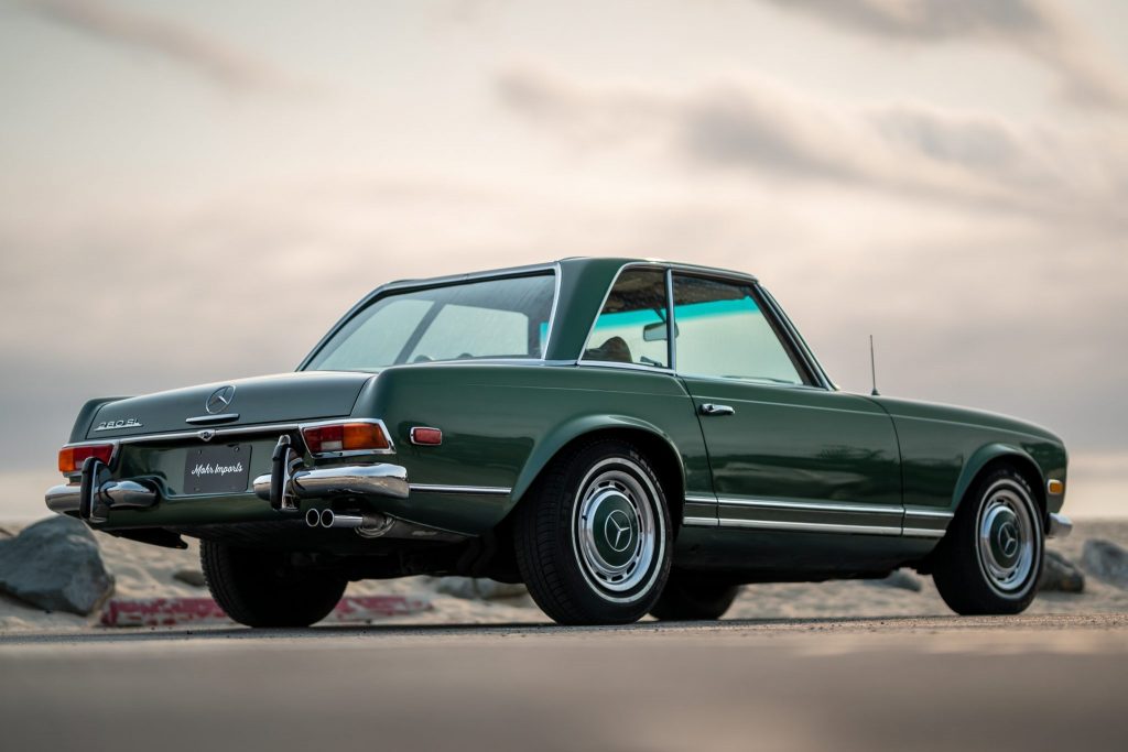 The 1970 Mercedes-Benz 280SL on Bring A Trailer was first purchased by the current owner over 20 years ago and it comes in an awesome Moss Green Metallic over Cognac leather colourway. The power is delivered by a 2.8-litre inline-six which has been mated to a four-speed automatic transmission, and some of the stand out features include a dark green soft top, a colour-matched removable hardtop, 14″ wheels with body-colour covers, four-wheel disc brakes, air conditioning, and an AM/FM radio.