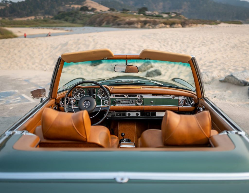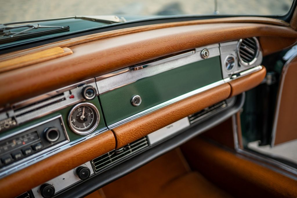 Some of the recent maintenance on this majestic looking machine includes an oil change and the W113 is now offered on dealer consignment with a tool kit, a storage stand for the hardtop, factory literature, blue California plates, and a clean California title. Whilst originally finished in the Moss Green Metallic, the exterior has been refinished and boasts the colour-matched removable hardtop, a dark green soft top, and chrome bumpers with overriders.