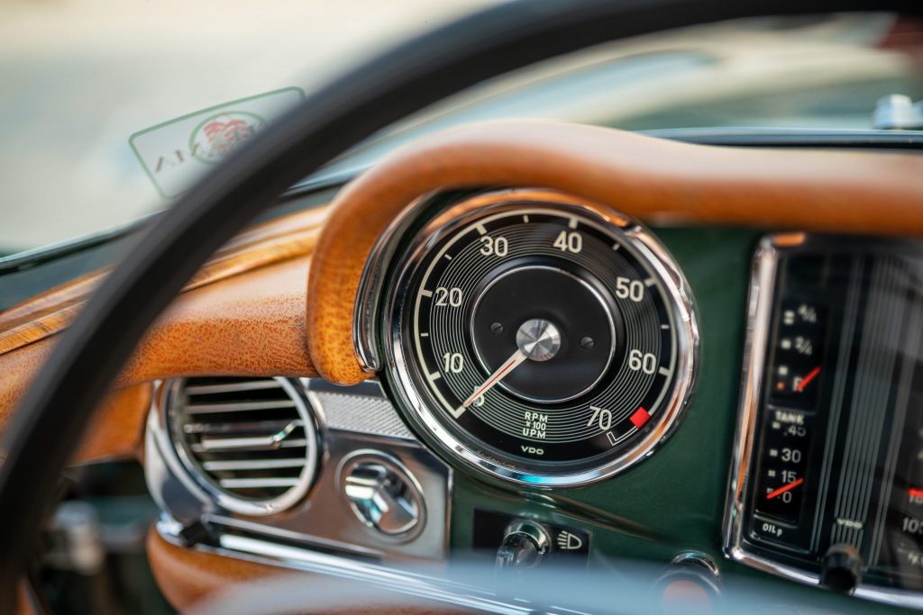 The two-spoke steering wheel is home to a striking green dash that houses VDO instrumentation which includes the 140-mph speedometer and a tachometer, as well as gauges for fuel level, coolant temperature, and oil pressure. The five-digit odometer shows 67k miles on the clock so it’s still in a remarkably good condition considering its age.