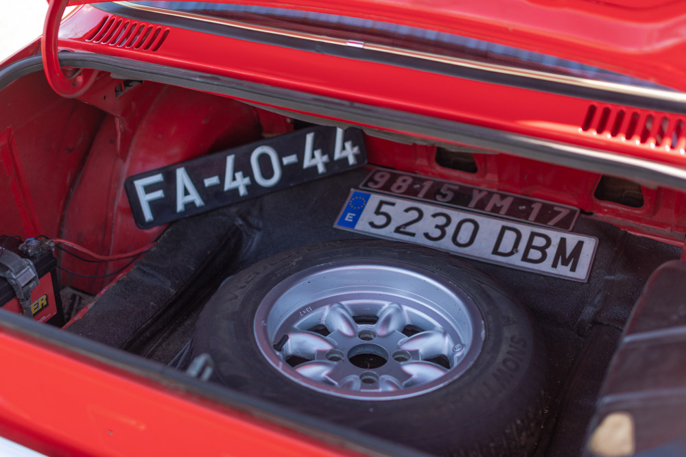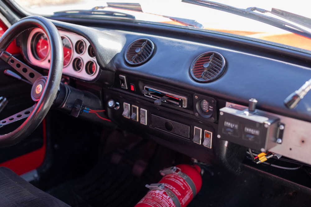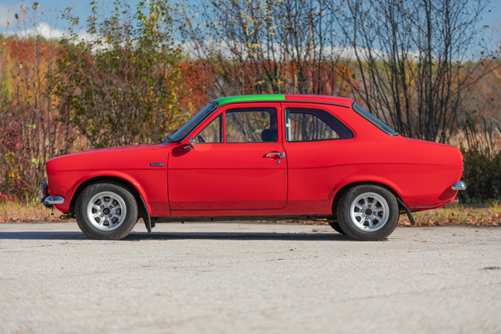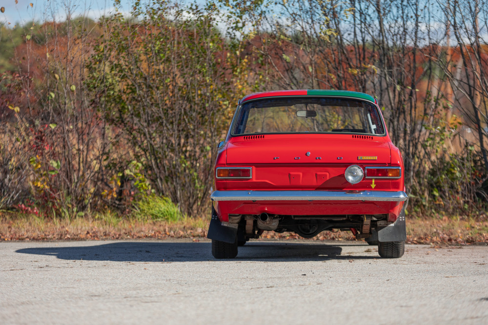The original finish can be seen in the trunk and engine compartments of this 1971 Ford Escort MK1 from Stratas. The majority of Halewood built twin cam cars were finished in Ermine White, however Maize Yellow and Sunset Red were offered as special-order options at the end of production. This is thought to be one of three factory produced Sunset Red cars – a rare breed indeed which will make it all the more alluring for motor racing aficionados.