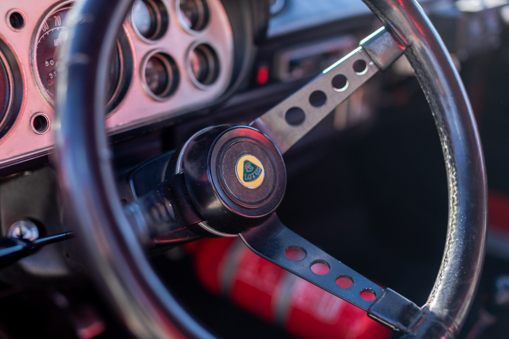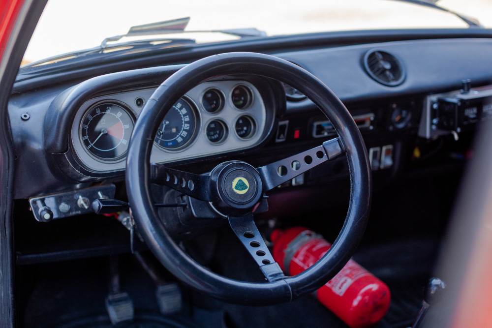 While the car did not campaign in period, it has taken part in a number of vintage rally events including the 2013 Rally Costa Brava Historic and the 2014 Bordeaux Sud-Ouest Classic. Some modifications have been carried out on it which includes a roll bar, racing seats (original seats included with sale though), rally instrumentation and a driver’s side view mirror. Lotus badges have been added to the correct Springalex steering wheel, front grille and rear deck lid. It has slotted front and rear disc brakes and Minilite alloy wheels with Vredstein tires all around.