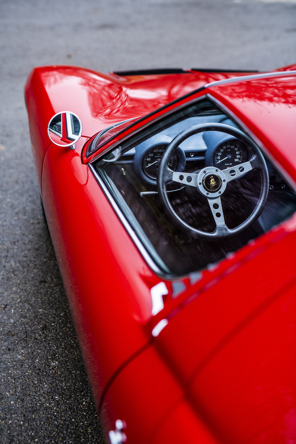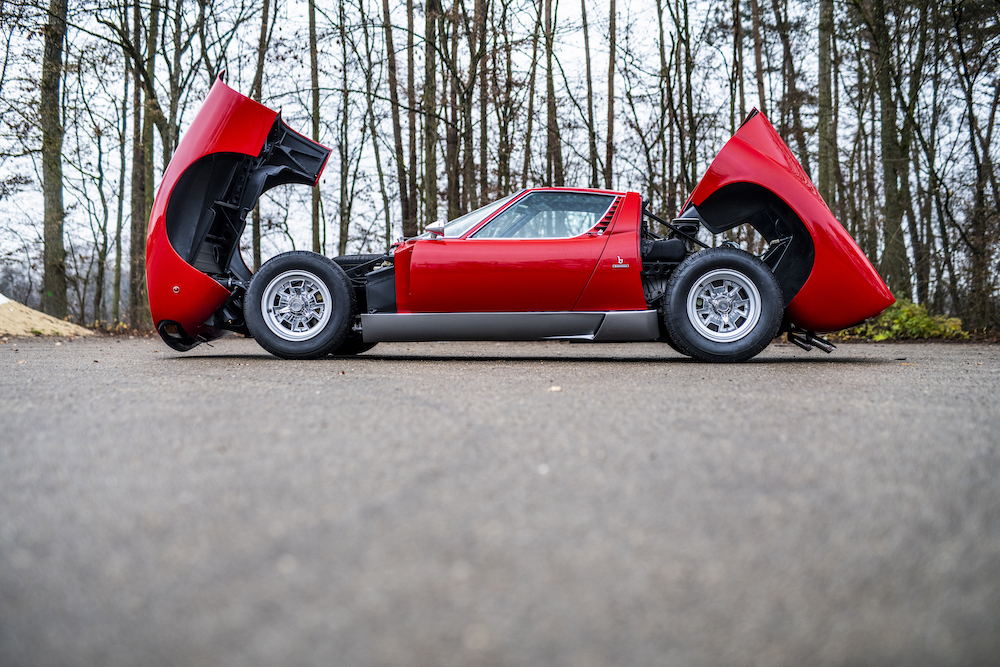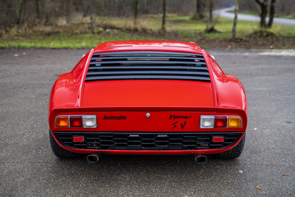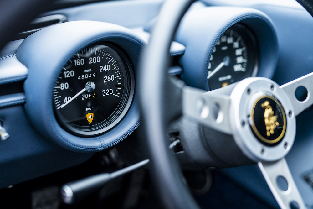 The current owner acquired the car in 2015 from the Dr. Oetker collection and decided to embark upon a restoration of the car to the specification in which it was in when it left Sant’Agata Bolognese in June 1971. The restoration of the body and paintwork was carried out by Carrosserie Battaglia-Bolognesi in Ferrara. They took the bodywork back to bare-metal taking away the Jota elements, which included the installation of original retractable headlights, before repainting the car in Rosso Corsa. The interior was also retrimmed in dark blue by Auto Interni and the mechanical elements, including the installation of a non-Jota exhaust system, were given a thorough once over by marque specialists Top Motors, run by ex-Lamborghini foreman Orazio Salvioli and his son Luca.