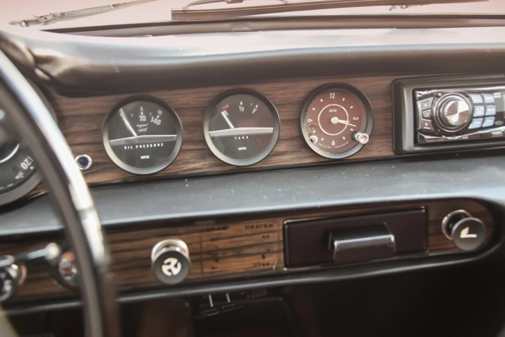The interior of this devilishly dapper Volvo features bucket seats trimmed in saddle leather along with matching door panels and contrasting brown carpets. A few of the stand out amenities include a lockable centre console, wood trim, a clock, a rear window defroster, stainless steel sill guards, and an Alpine CD stereo. The three-spoke steering wheel frames a 120-mph VDO speedometer, a 7k-rpm VDO tachometer, and Smiths gauges for oil temperature and water temperature. After the sort of classic sports car you typically won’t see anywhere else on the road? This might just be the one for you.