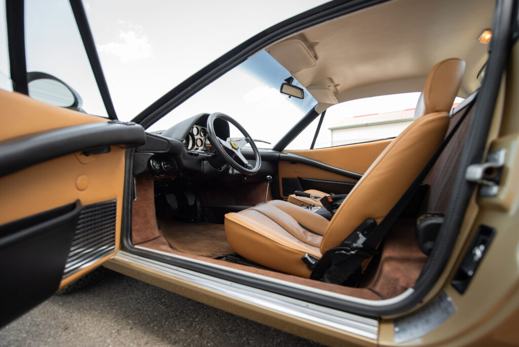 Chassis number 20695 was constructed to European specifications and originally delivered to Bernard Kummer of Hadamar, Germany, on February 14, 1977. The car was finished in the stunning Oro Chiaro over a Tan leather interior and was notably delivered without a stereo or factory air conditioning, emphasizing its pure driving focus. It later found its way to California in the 1980s, where it became a prized possession of several notable Ferrari aficionados, including renowned restorer Patrick Ottis of Berkeley, California.