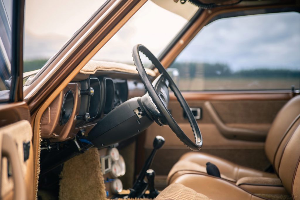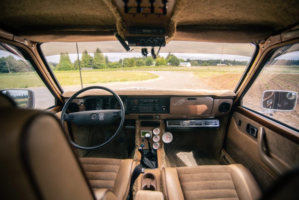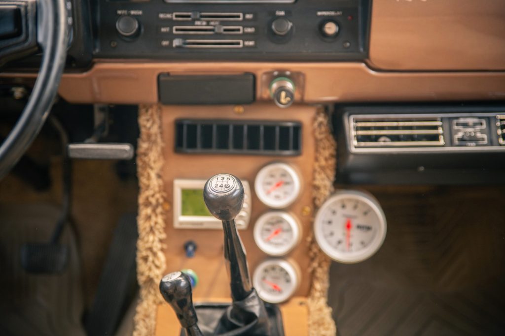 The interiors of this classy offering boast custom upholstery on the door cards and the sun visors, and deep carpeting is used to cover the floors and the headliner to deliver the ultimate in vintage vibes throughout. Adjustable Recaro bucket seats with custom red “Chinook” embroidery were sourced from a 1985 Toyota Supra for a touch of authenticity.