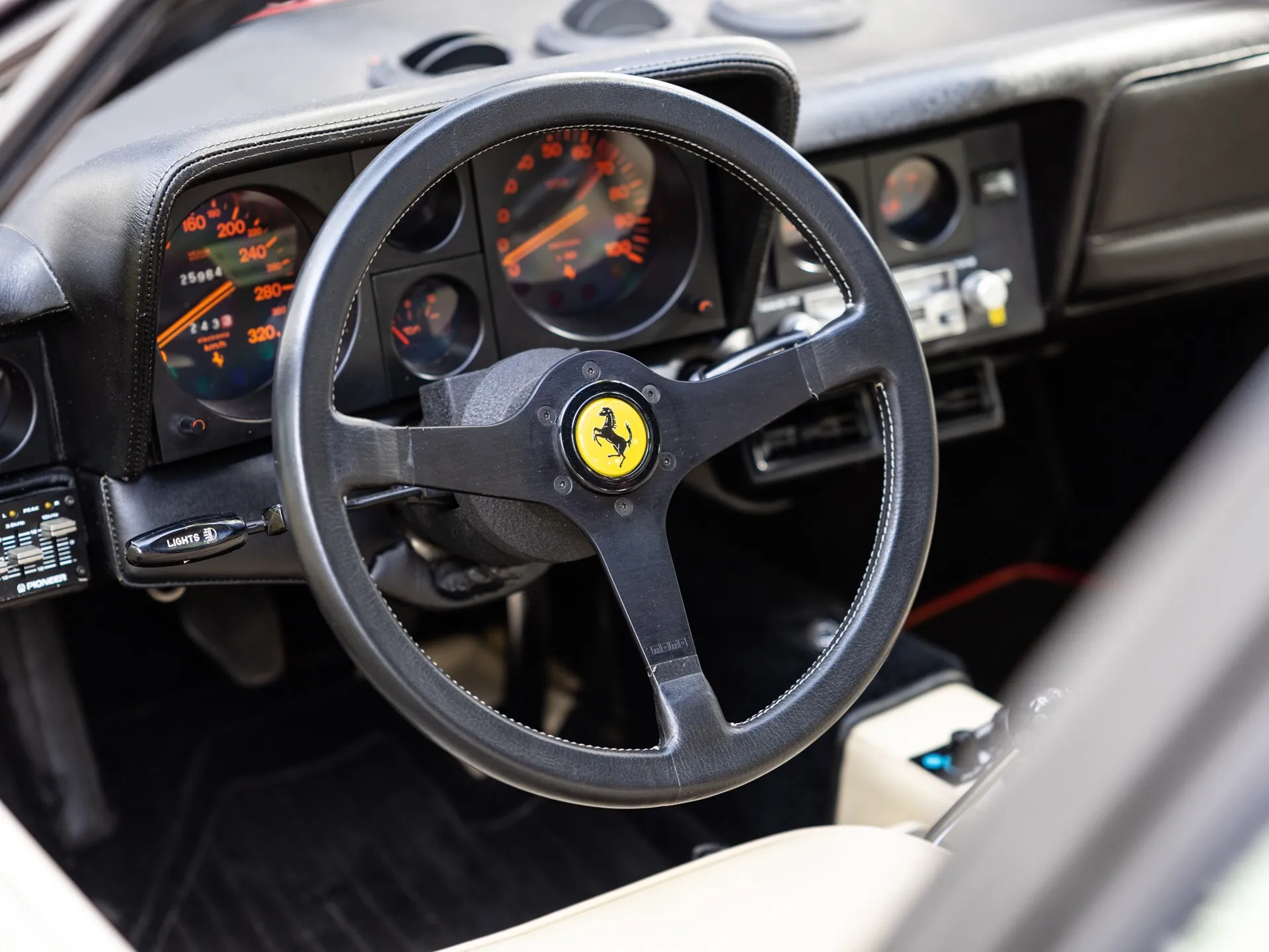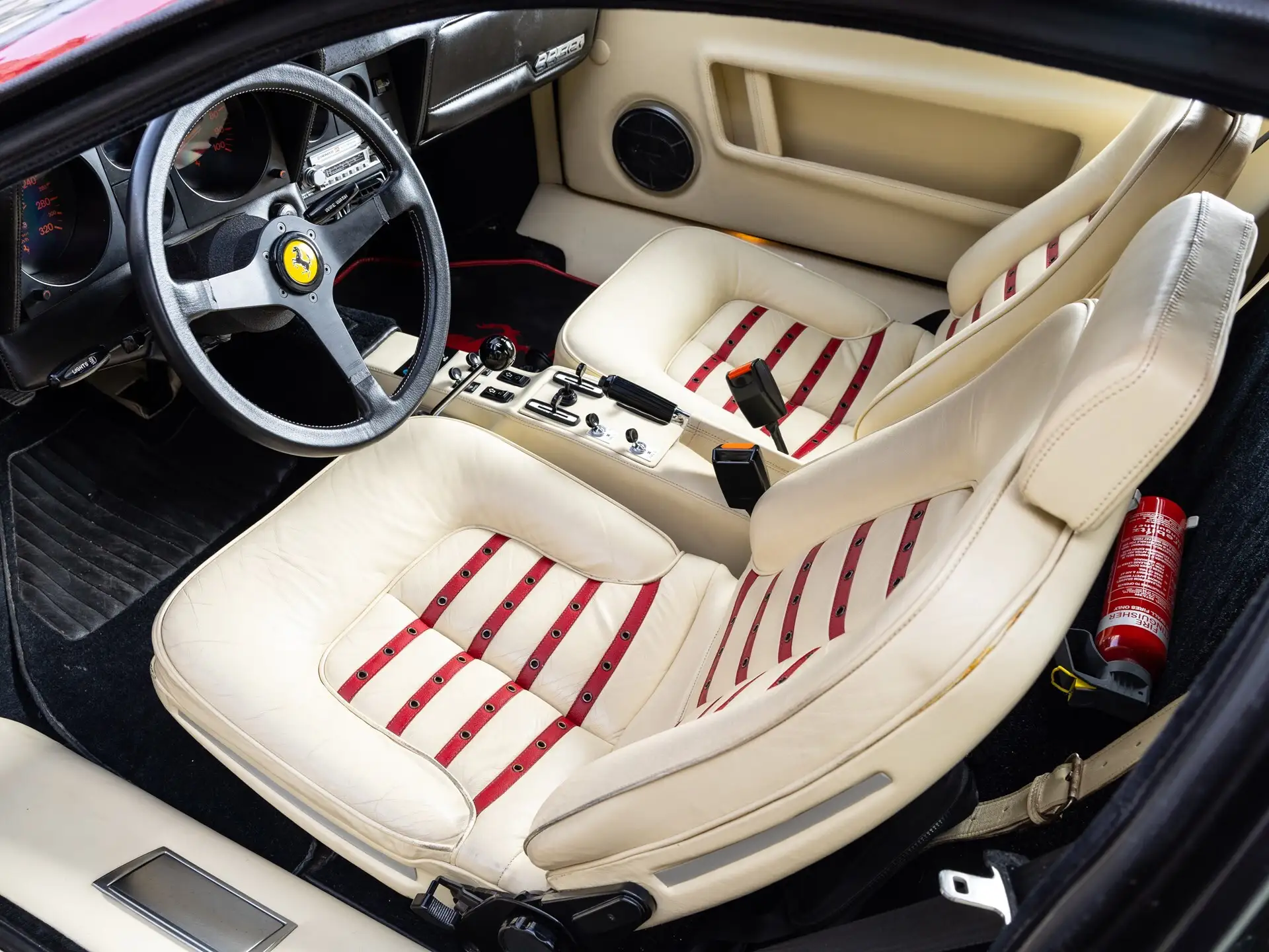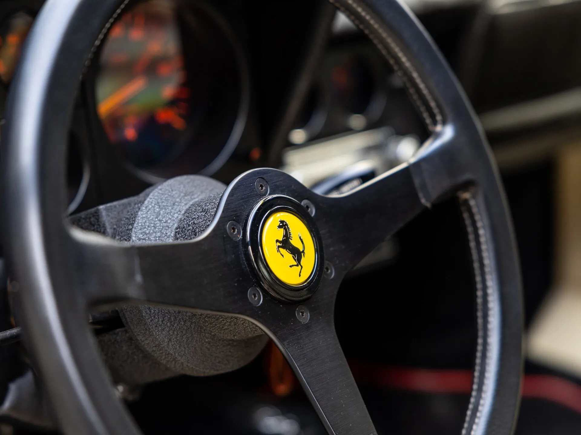 This magnificent lot is a rare and highly sought-after early model heralding from the first year of BBi production. It was then delivered in January 1982 via the prominent German Ferrari agent, Auto Becker of Düsseldorf, it was unsurprisingly configured in left-hand drive and finished in the classic Ferrari colour scheme of Rosso Corsa with Black leather interior. Surprisingly, however, the car was specified with body coloured induction intakes and spoilers preferred over the more commonplace satin black items. These eye-catching features are kept to this day.