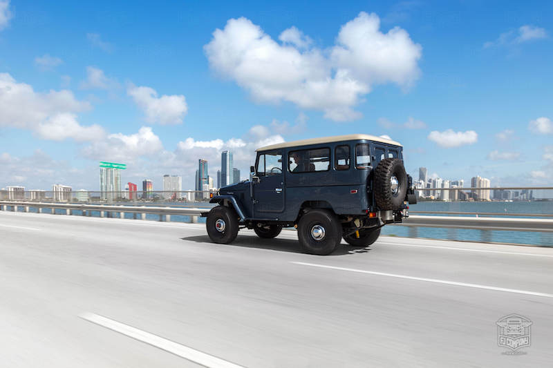 Aesthetically striking, the exterior of the 1984 Toyota Land Cruiser FJ43 comes in Venetian Blue, a colour which takes its design inspiration from a certain 1987 Porsche 911. This eye-catching and visually superior colour carries on into the cabin of the car, where it has a striking contrast with the saddle vinyl trim. To the exterior of the steed, you’ll discover a steel hardtop and four super-tough 33” BF Goodrich tyres – ideally suited for all-terrain, all-weather driving and an unparalleled overall performance.