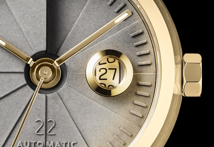 Obviously, it is the use of concrete during the design process that really differentiates these watches from 22 Studio and the richly textured and durable concrete dial is the real focal point of the 4D Concrete Watch. It is made from a unique concrete mix — a high strength concrete which solidifies rapidly, has minimal shrinkage, and delivers an exceptional visual impact when fully set. Each concrete dial will have a unique pattern due to the way its created so each one of these 4D Concrete Watches is completely unique – another real selling point in our opinion here at The Coolector.