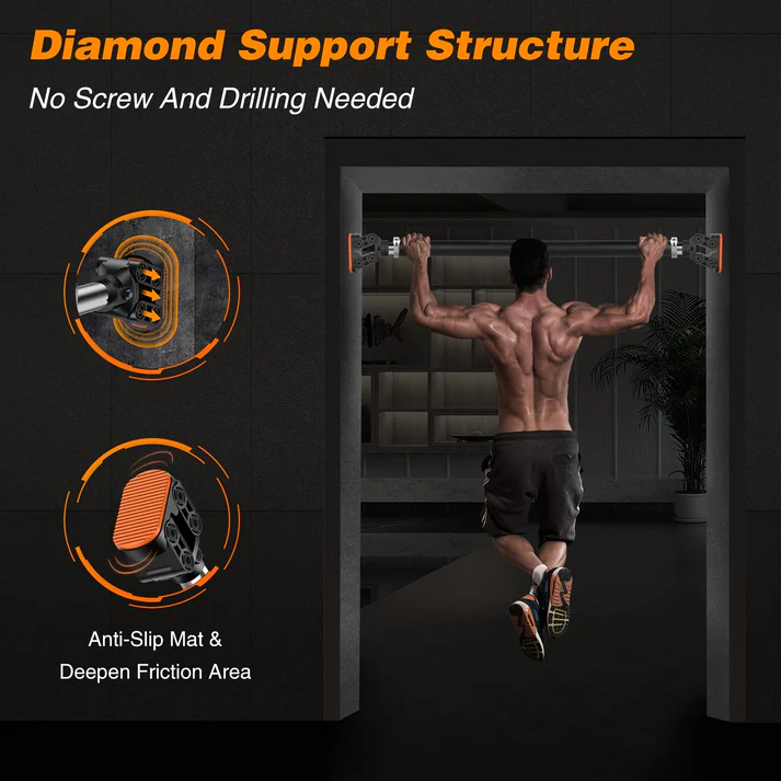 - No need to drill this horizontal bar into the wall or door frame. All you need to do is extend it to the right length, set it at the desired height. It can be extended from 28.3″ – 36.2″.
