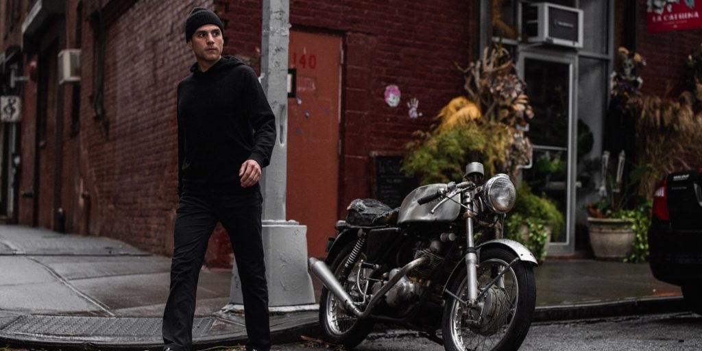 Western Rise love cotton t-shirts for their minimalistic aesthetic, but couldn’t find a fabric that lived up to their standards. They wanted something with structure and drape that looked brilliant on its own. Western Rise required a fabric that have the capacity to stretch and wick sweat when we move, but fight odours for multiple days of wear when traveling. What they found was a heavyweight, yet incredibly soft cotton, polyester, and spandex blend that looks and feels incredible. ($99)